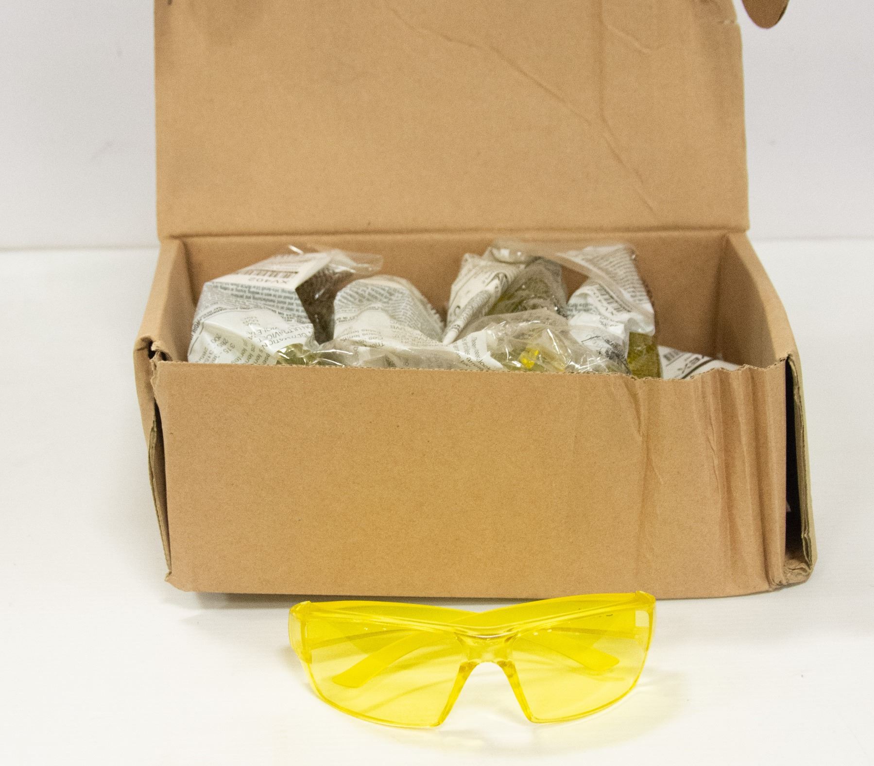 BOX OF UVEX AMBER TEMPLE AMBER LENS SAFETY GLASSES
