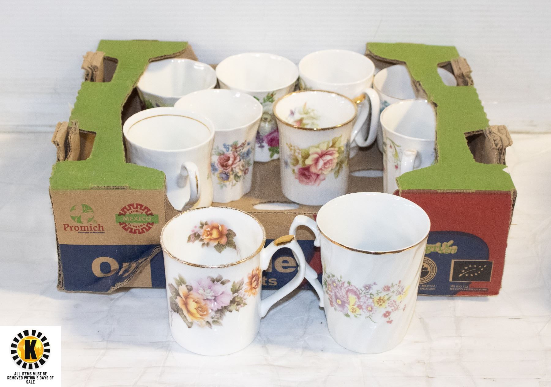 BOX OF VARIOUS BONE CHINA MUGS SETS