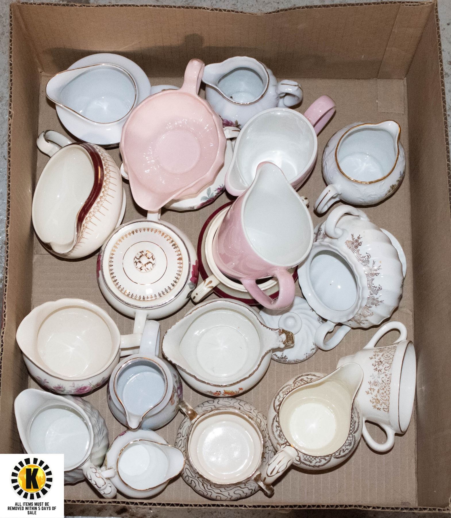 BOX OF VARIOUS CERAMIC AND PORCELAIN CREAMERS AND