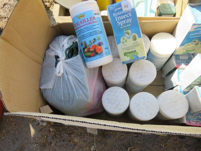 BOX OF VARIOUS LAWNCARE (WEEDKILLER, BUG SPRAY, ETC)