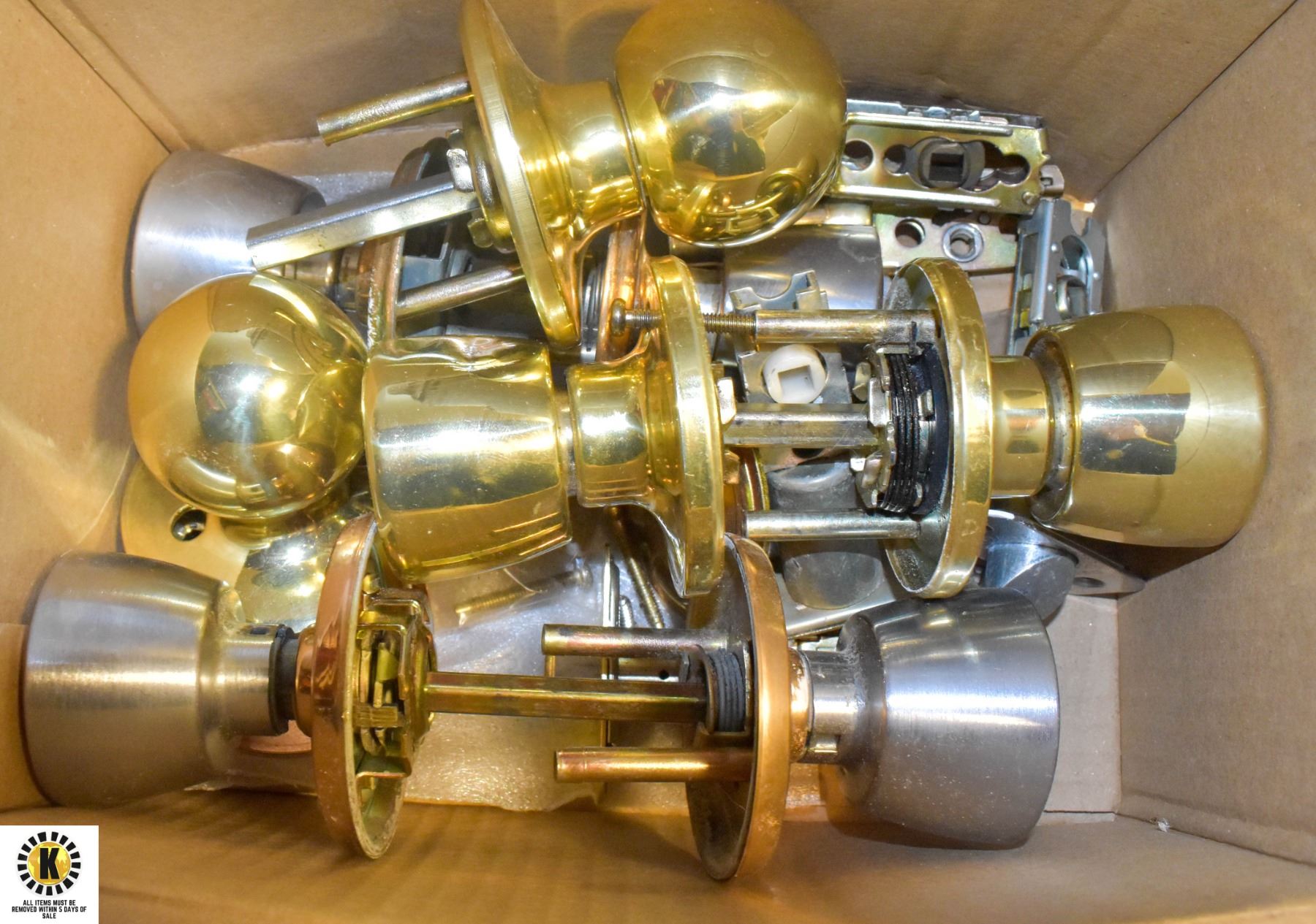 BOX OF VARIOUS METAL DOORKNOB SETS