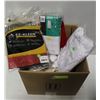 BOX OF VARIOUS NEW COMMERCIAL APRONS & MORE