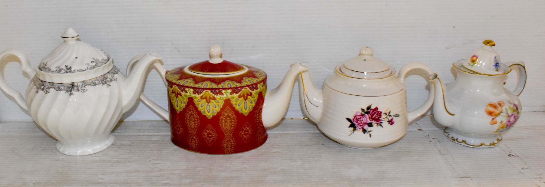 BOX OF VARIOUS TEAPOTS