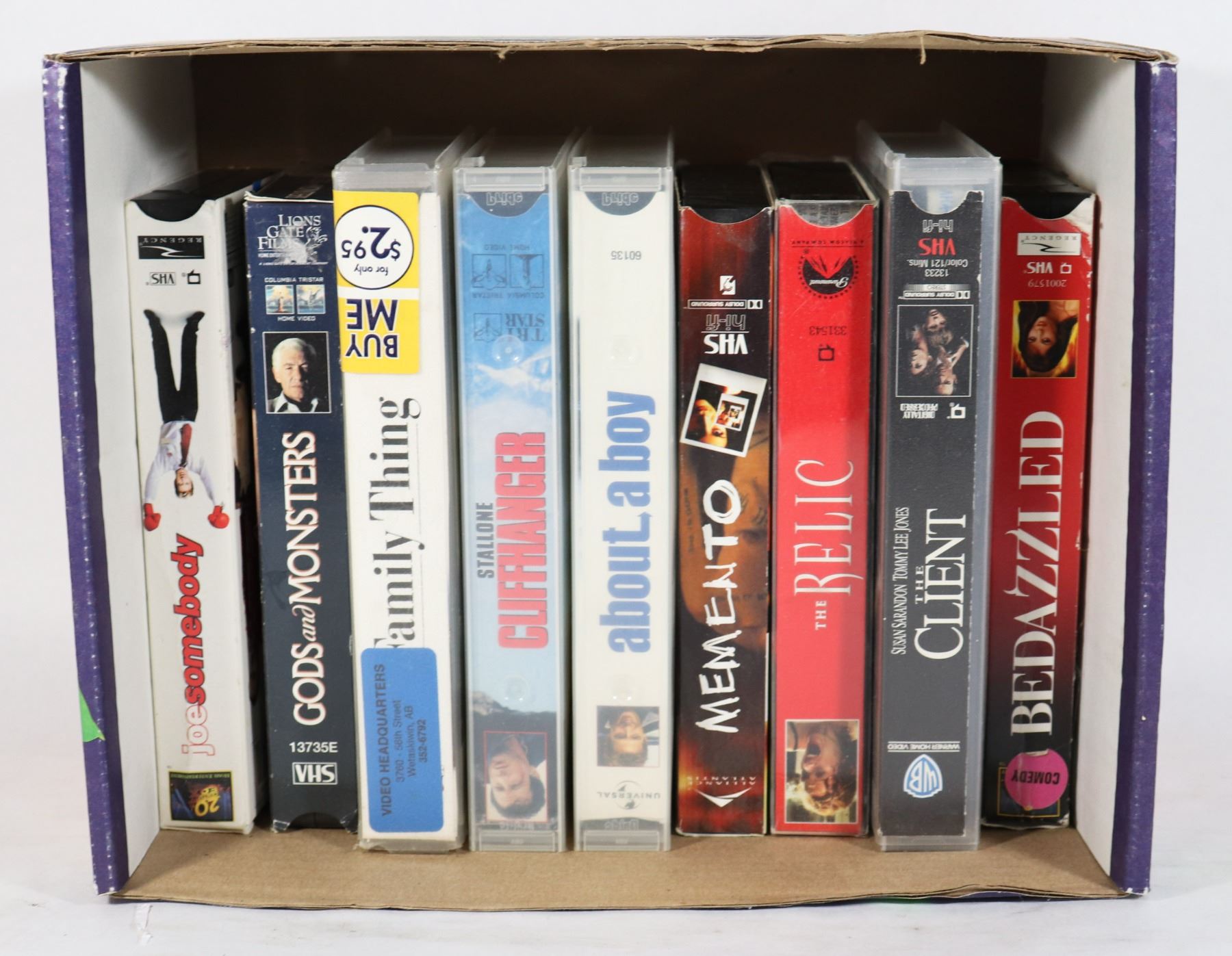 BOX OF VHS TAPES INCLUDING THE RELIC, CLIFFHANGER,