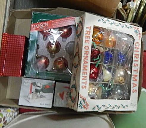 BOX OF VINTAGE AND OTHER CHRISTMAS ORNAMENTS