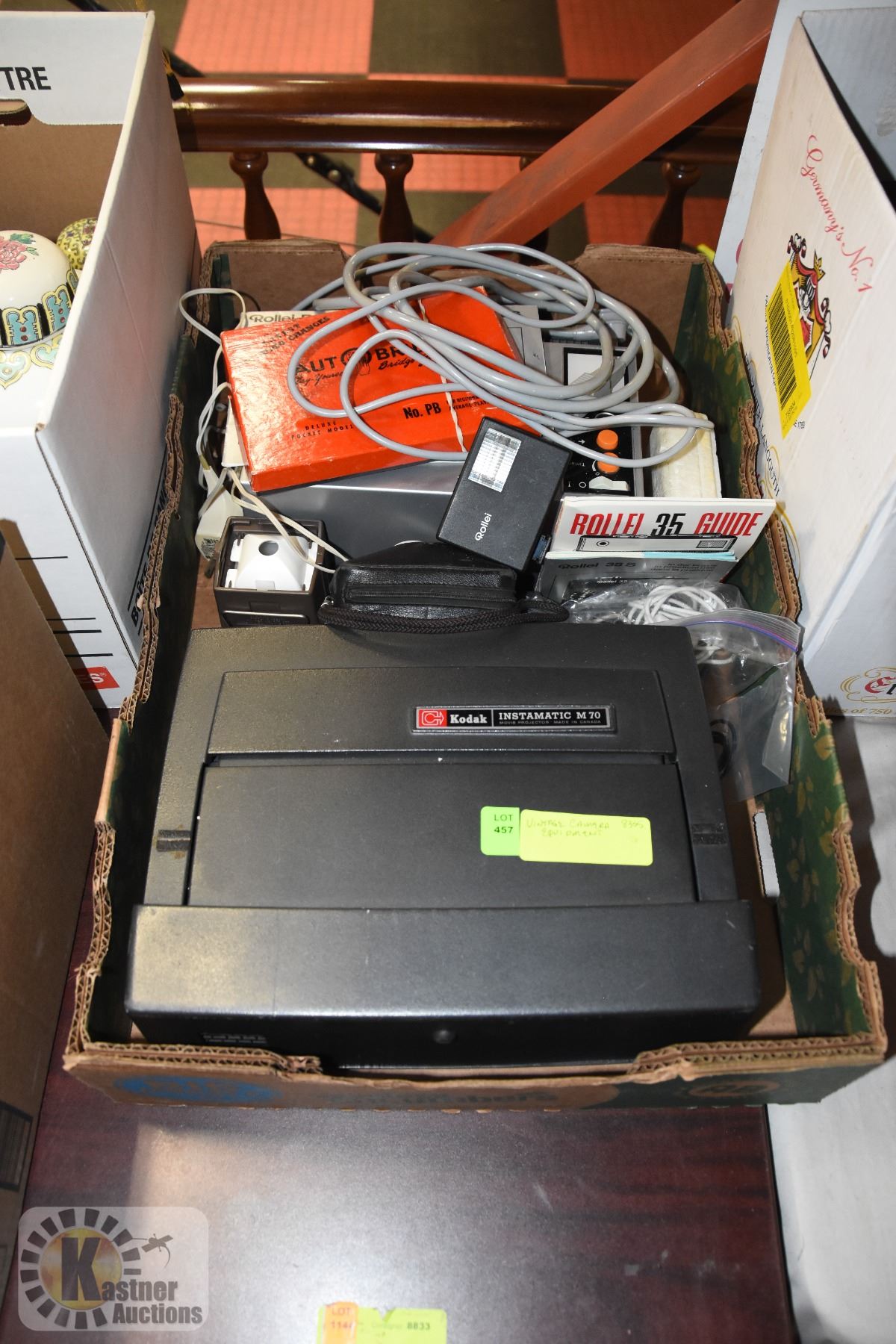 BOX OF VINTAGE CAMERA EQUIPMENT