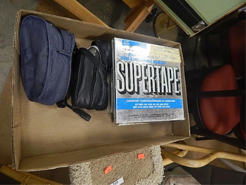 BOX OF VINTAGE FILM REELS AND ELECTRIC RAZORS