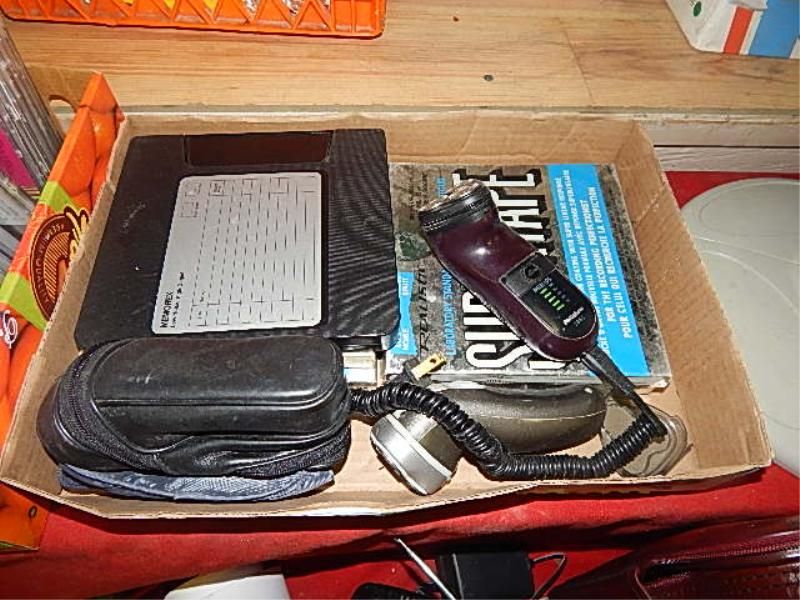 BOX OF VINTAGE FILM REELS AND ELECTRIC RAZORS