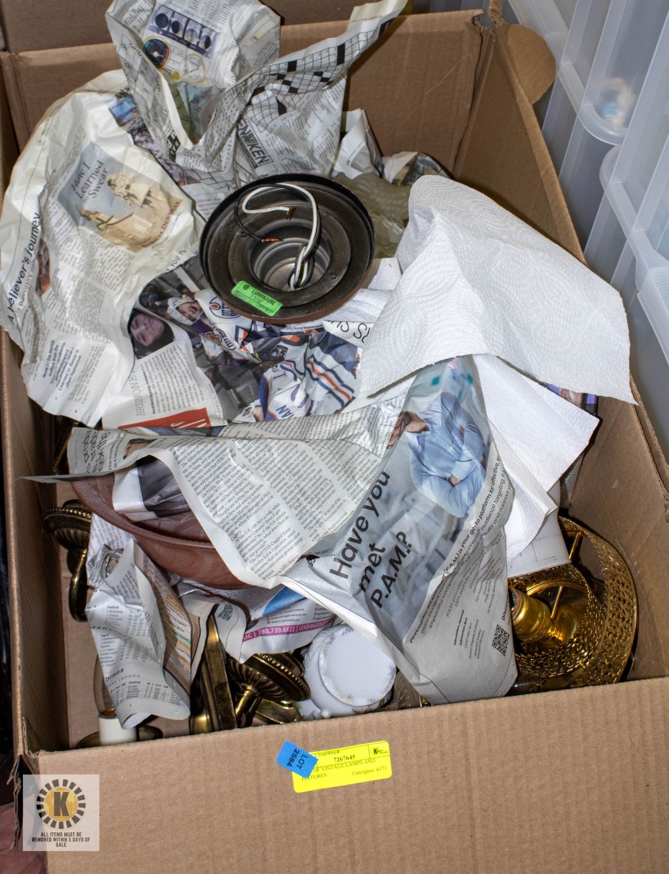 BOX OF VINTAGE LAMPS AND FIXTURES