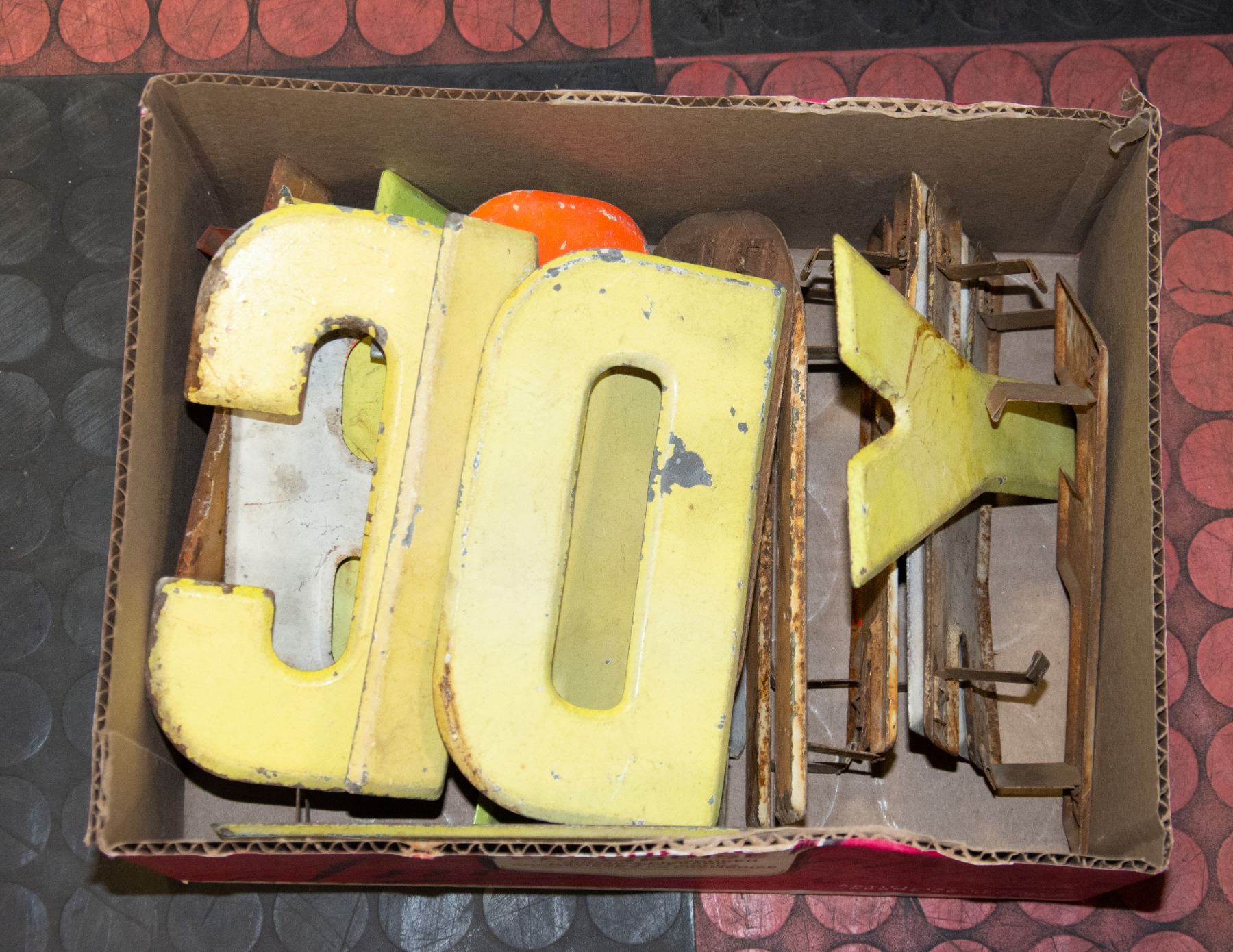 BOX OF VINTAGE METAL LETTERS/NUMBERS