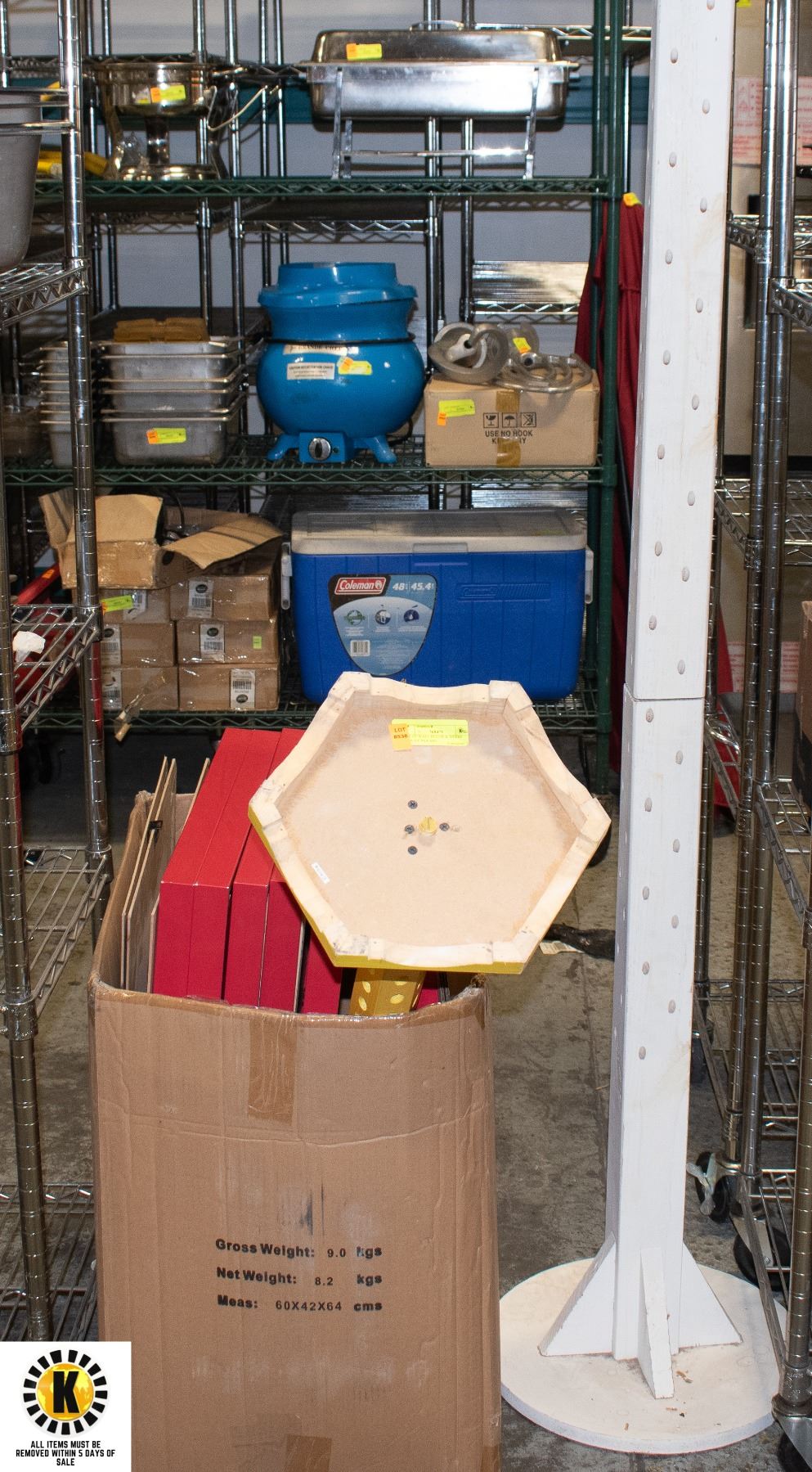 BOX OF WALL DECOR & WOOD DISPLAY PILLARS