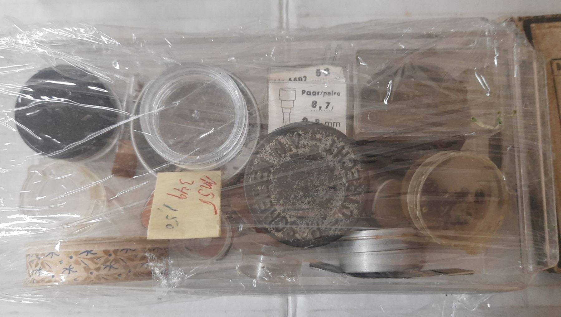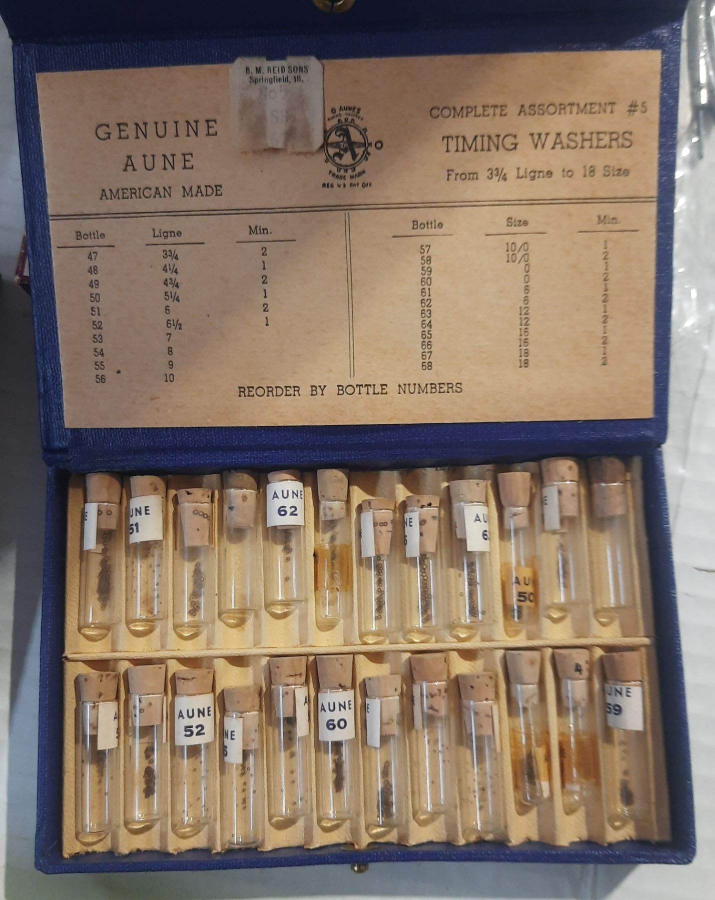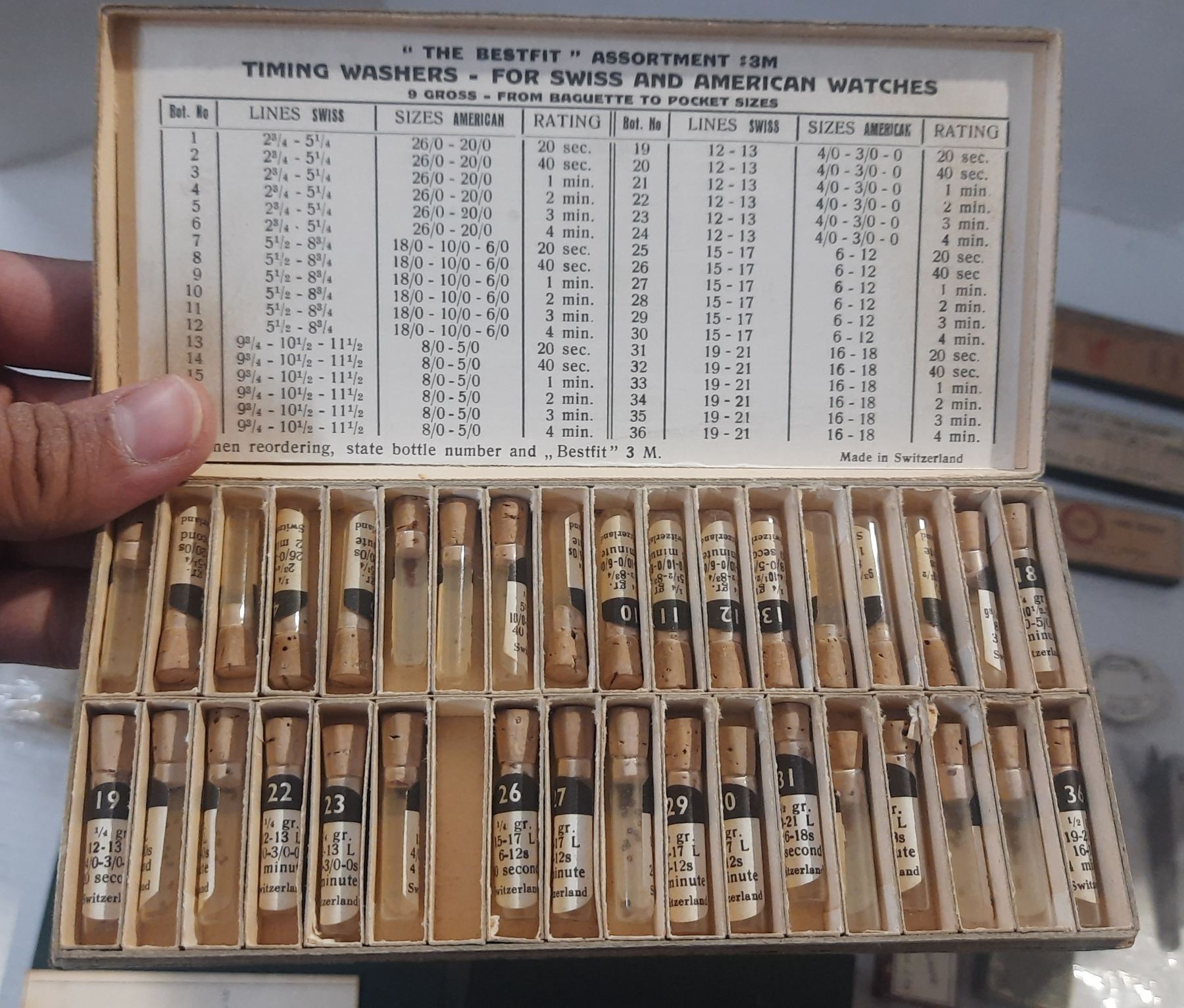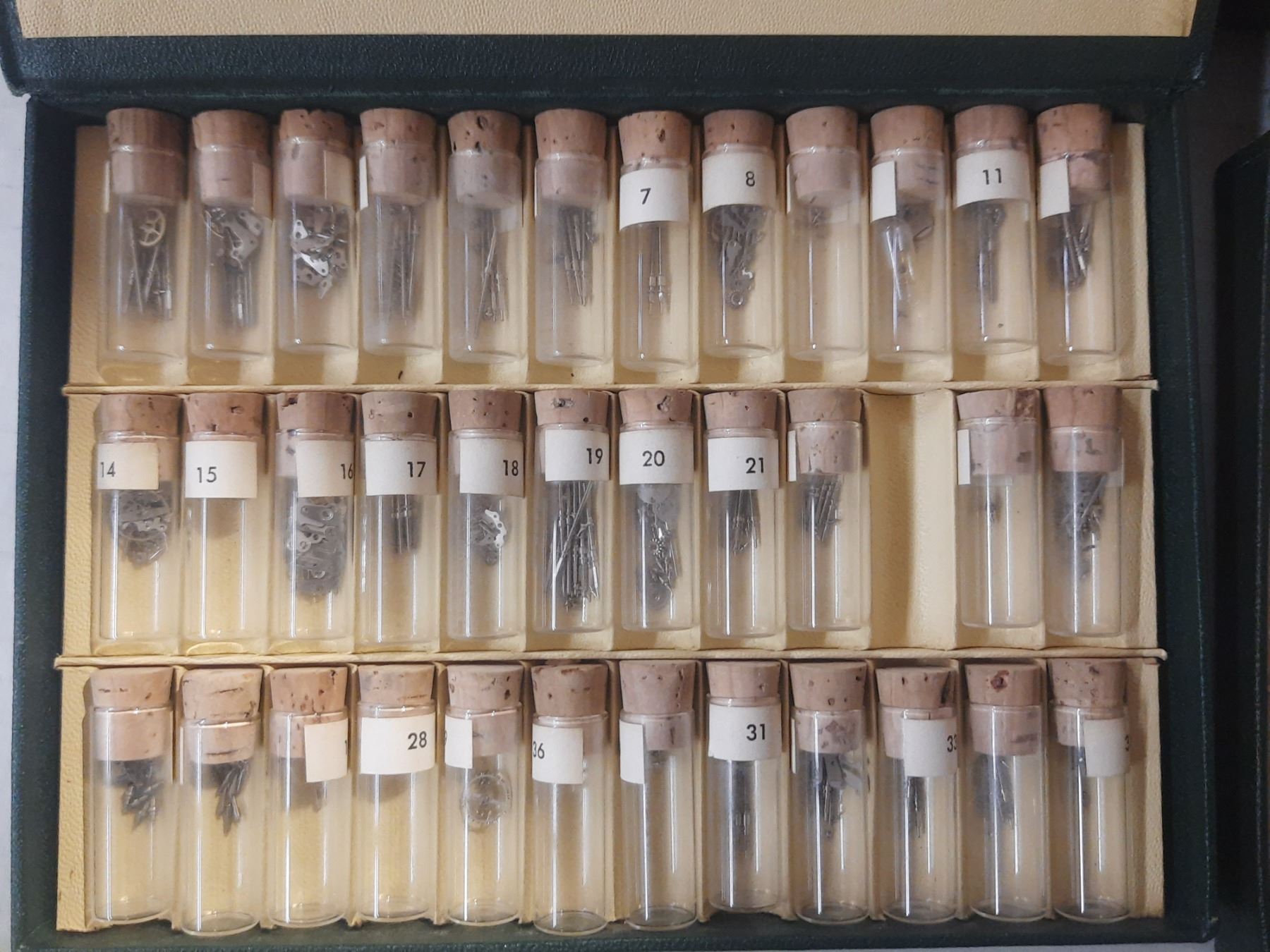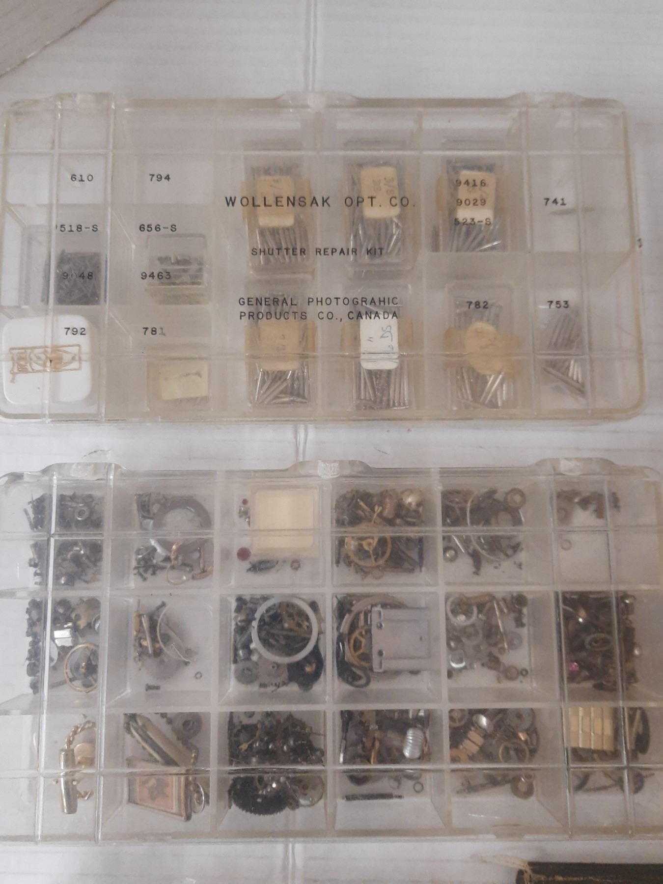 BOX OF WATCH PARTS, SOME USED, SOME NOS, SOME TOOLS
