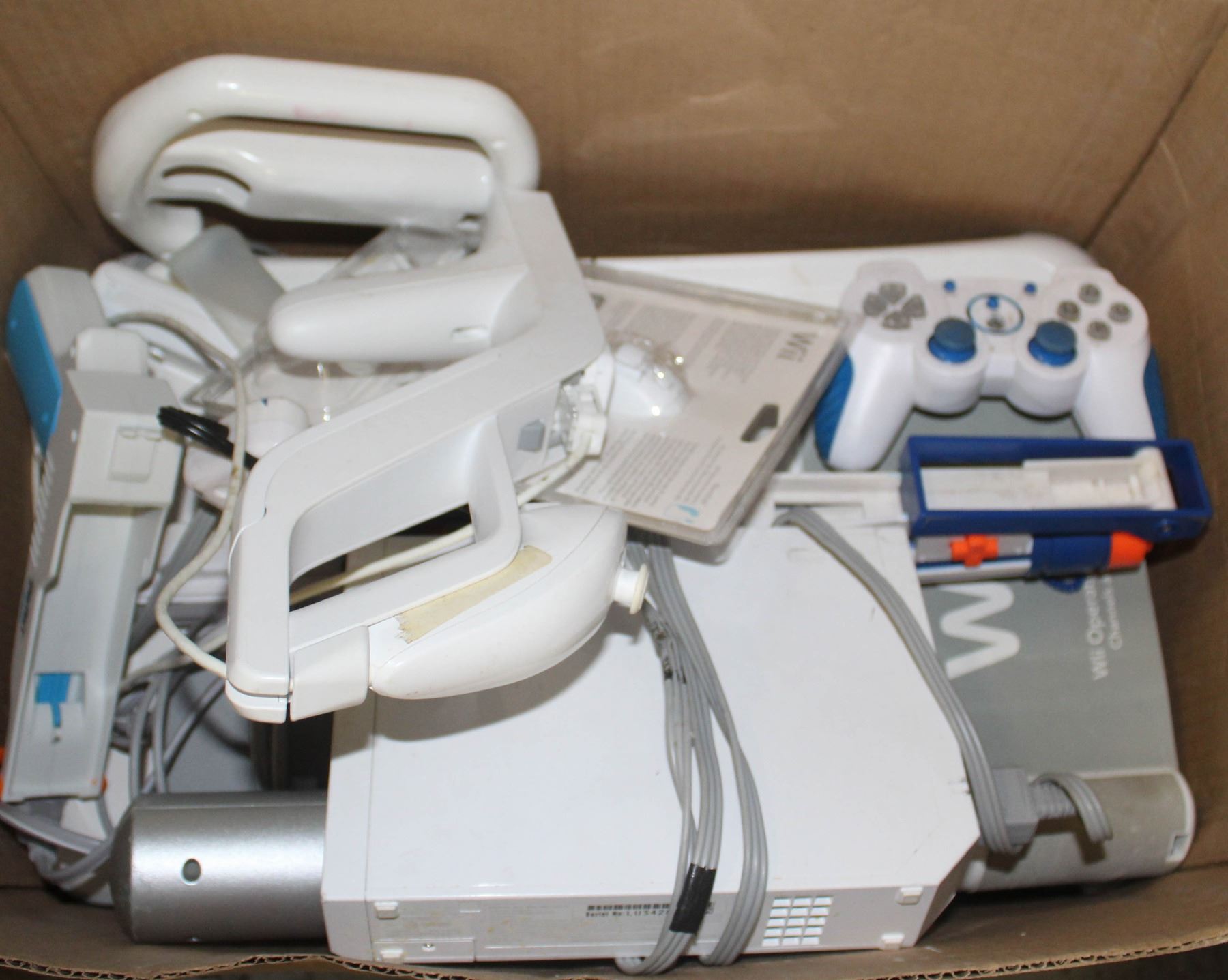CONSOLE,2 WII FIT,2 CONTROLLERS, GUNS ,ETC
