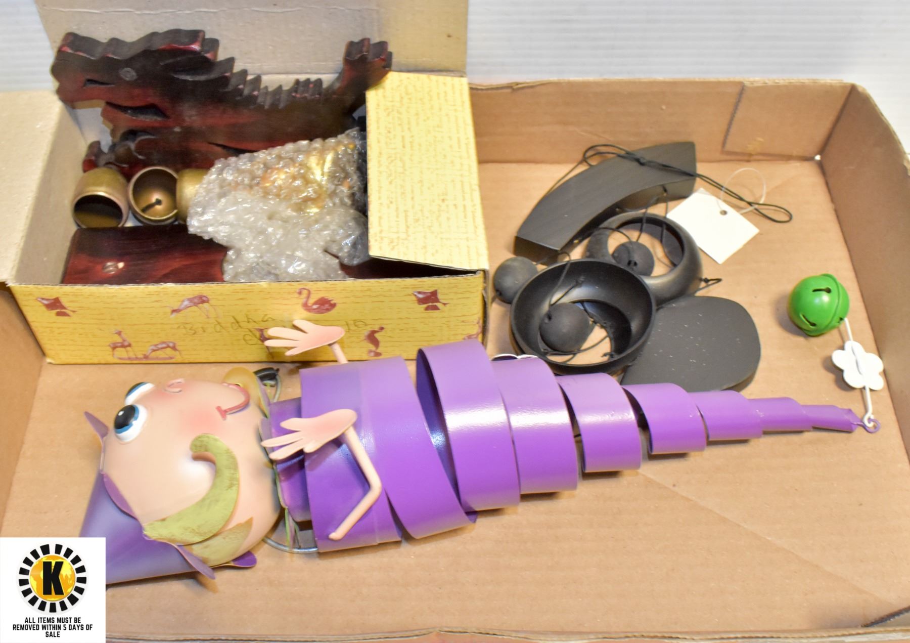 BOX OF WINDCHIMES AND A BUDDHA GONG
