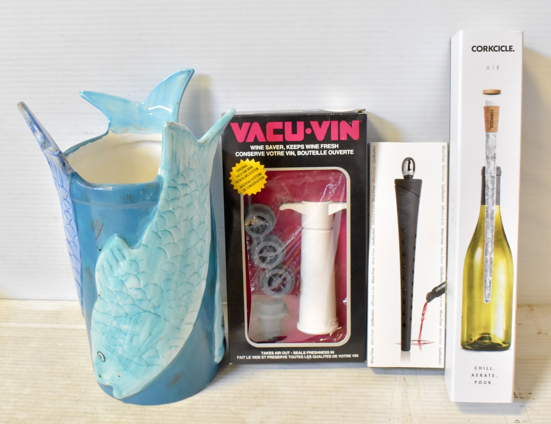 WINE COOLER; VACU-VIN WINE; CORKSICLE (CHILL/AERATE/POUR); WINE FINER (STRAINER/AERATOR/STOPPER/NON DRIP POURER)