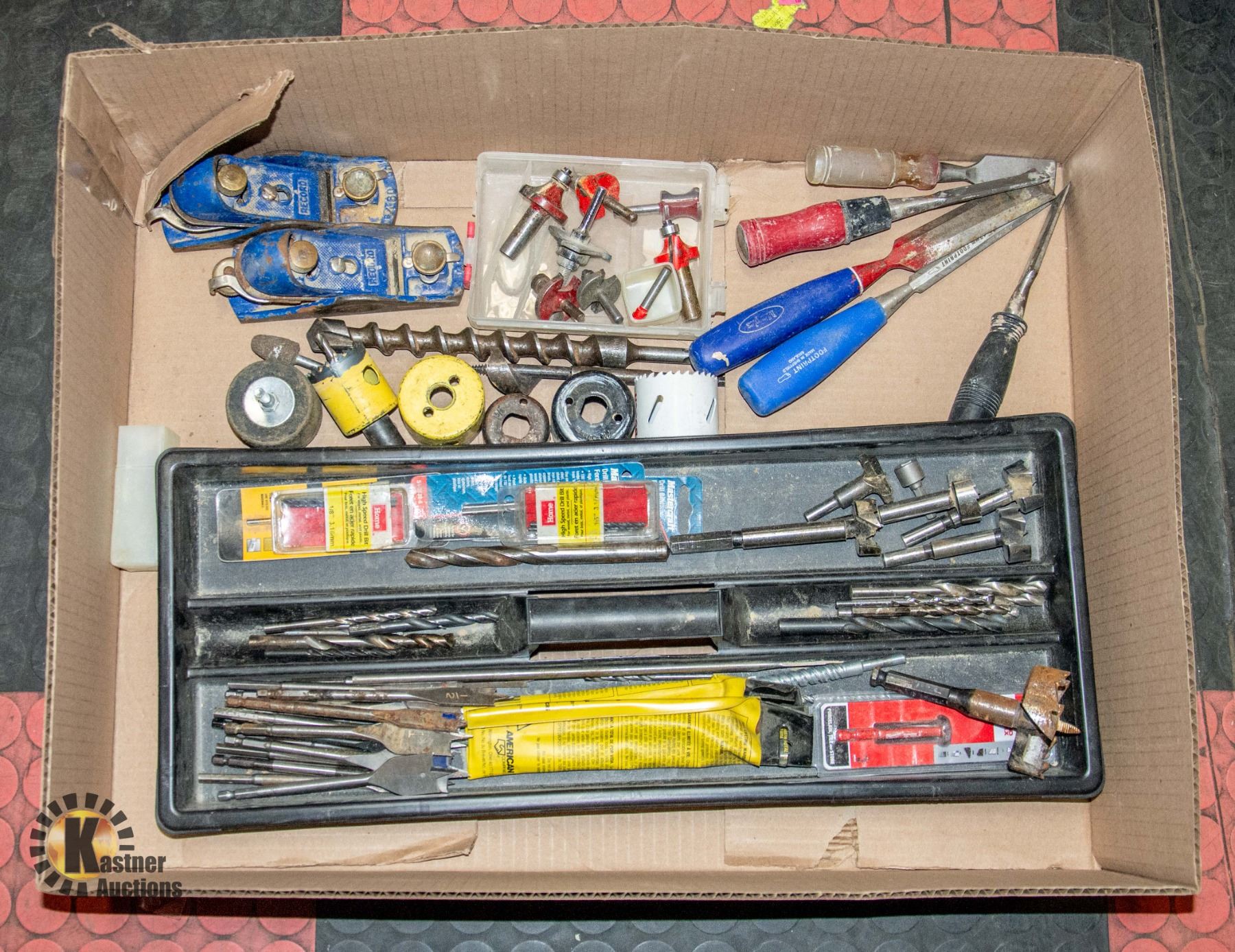 BITS INCL. 2 BLOCK PLANES, CHISEL SET, NEW DRILL BITS, SPADE BIT SETS, ROUTER BITS, SPECIALTY BITS, ETC. **ALL ITEMS MUST BE REMOVED BY 5PM SATURDAY, APRIL 15TH 2023. ALL REMAINING ITEMS WILL BE SUBJECT TO A $6.00 PER DAY STORAGE CHARGE. ANY ITEMS REMAINING AFTER MONDAY, APRIL 30TH, 2023 WILL BE CONSIDERED FORFEITED. NO REFUNDS WILL BE ISSUED FOR FORFEITED ITEMS. TO SCHEDULE A PICK UP APPOINTMENT CLICK HERE