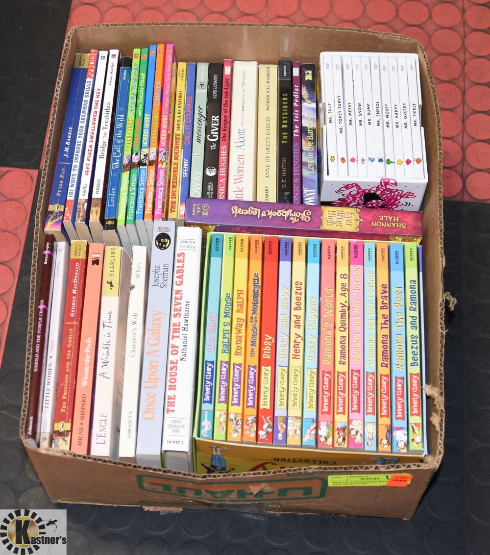 OF EXCELLENT TITLES INCL. 15 TITLE BEVERLY CLEARY BOOK SET, MR. MEN BOX SET, EVER AFTER HIGH, CHARLOTTE'S WEB, CALL OF THE WILD, ANNE OF GREEN GABLES, ETC. (54 BOOKS IN ALL)