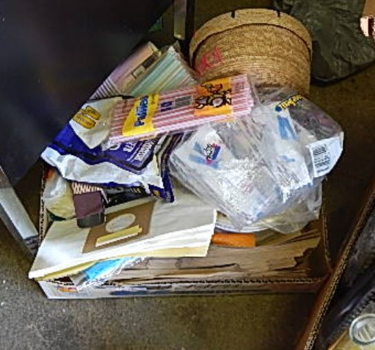 BOX TAKE OUT PAPER PLATES, CUPS, STRAWS AND CUPCAKE PAPERS