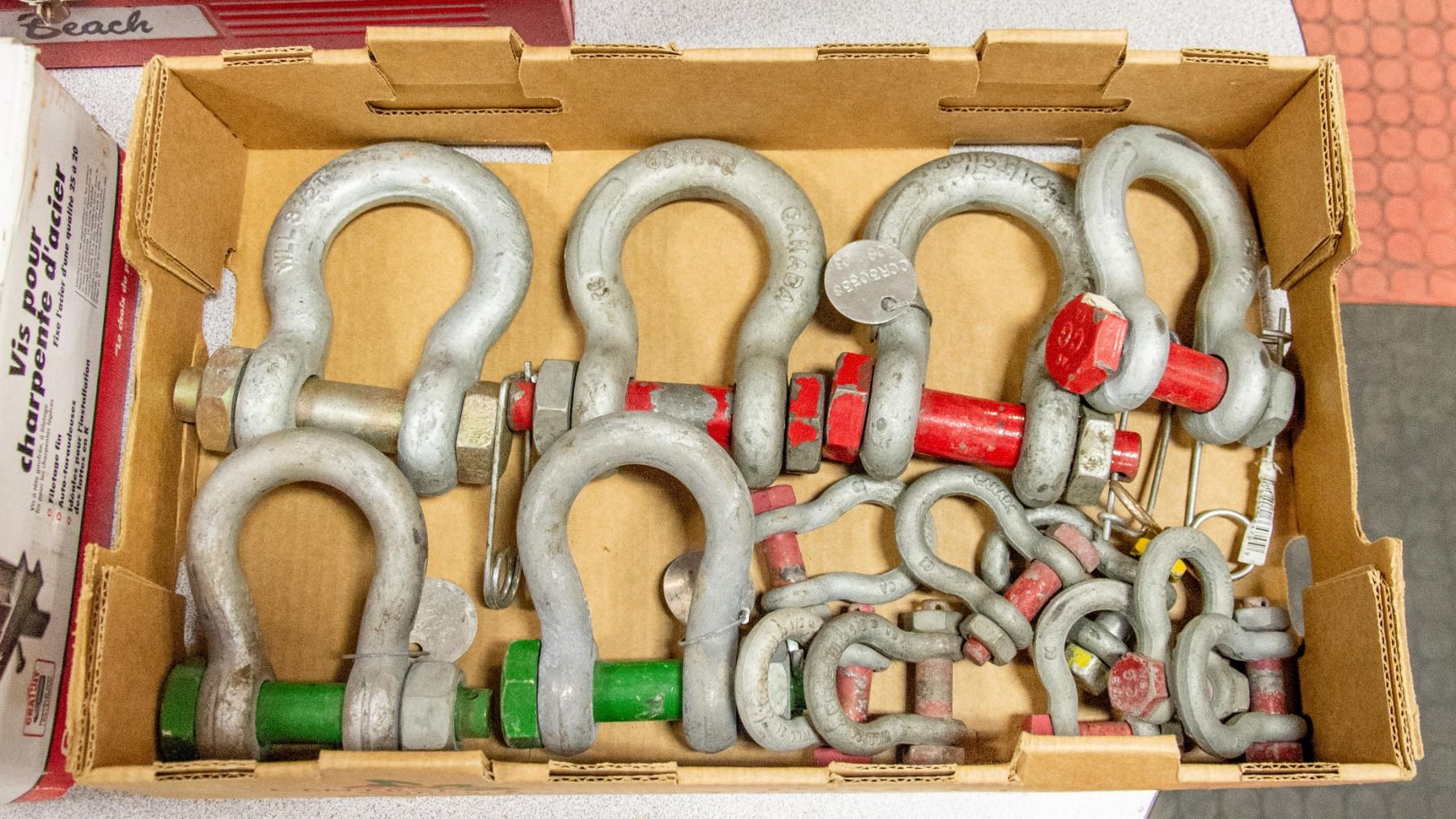 BOX W/ 14 SHACKLES 8 TON AND SMALLER.
