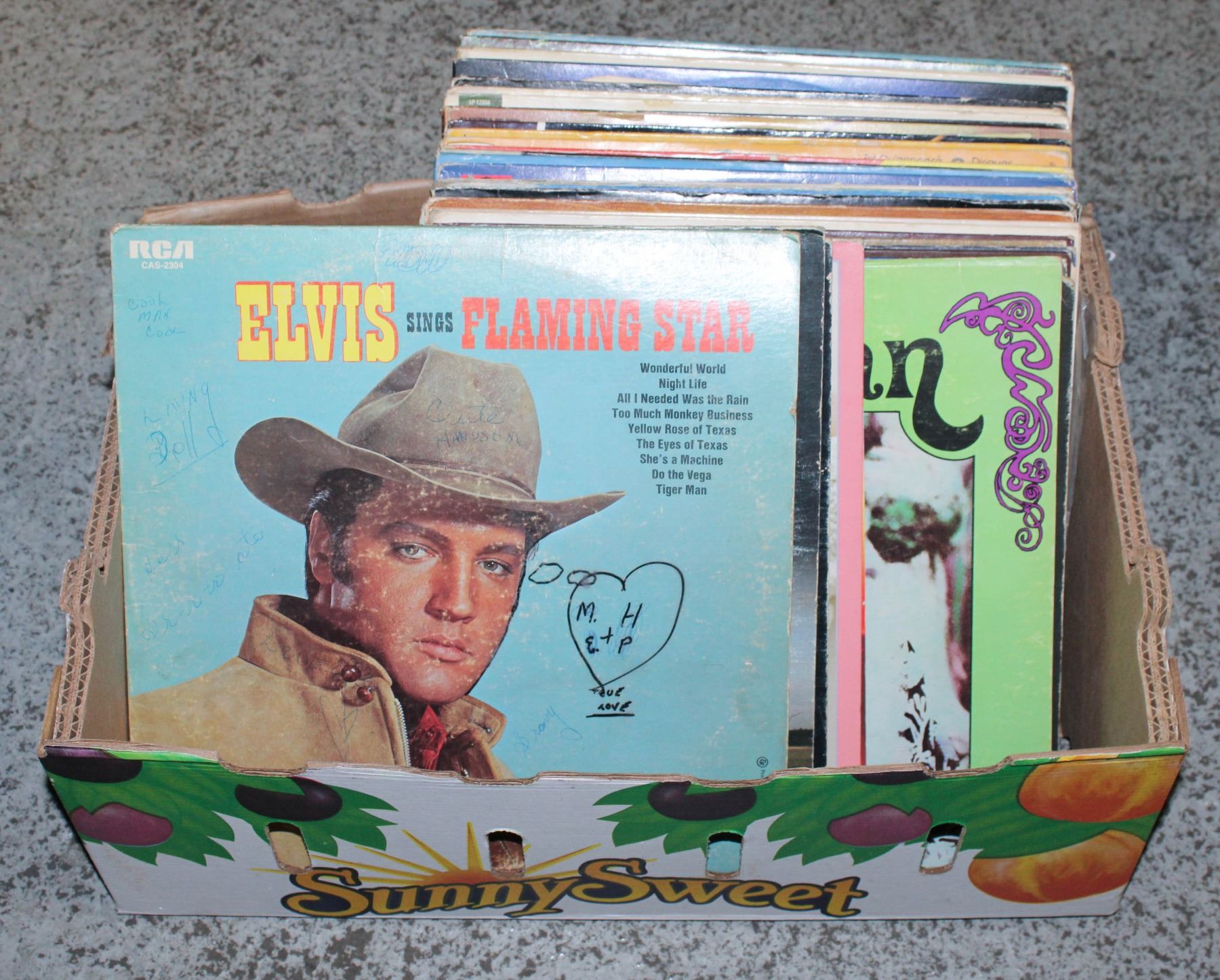 BOX W/ 38 LP VINYL RECORDS: ELVIS, ABBA,