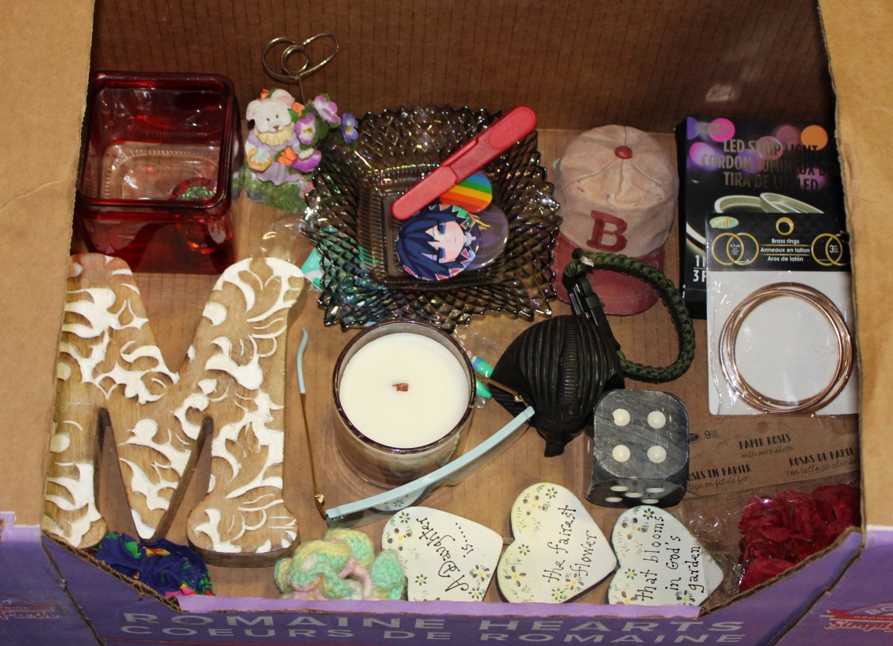 FIGURINES VASE NEW PENS HANDMADE HAIR BANDS WOODEN DECORATION LETTER M NEW PACK OF DRIE ROSESS NEW 3 BRASS RINGS BUTTON BADGE, VINTAGE BLACK STONE CARVED RAMSES IV EGYPTIAN PHARAOH HEAD FIGURINE, WOODEN PERSONALIZED DAUGHTER PLAQUE HEARTS PRESENT, VINTAGE IRRIDESCENT CARNIVAL GLASS **ALL ITEMS MUST BE REMOVED BY 5PM SATURDAY, MARCH 8TH 2025. ALL REMAINING ITEMS WILL BE SUBJECT TO A $6.00 PER DAY STORAGE CHARGE. ANY ITEMS REMAINING AFTER MONDAY, MARCH 24TH 2025 WILL BE CONSIDERED FORFEITED. NO REFUNDS WILL BE ISSUED FOR FORFEITED ITEMS. TO SCHEDULE A PICK UP APPOINTMENT CLICK HERE