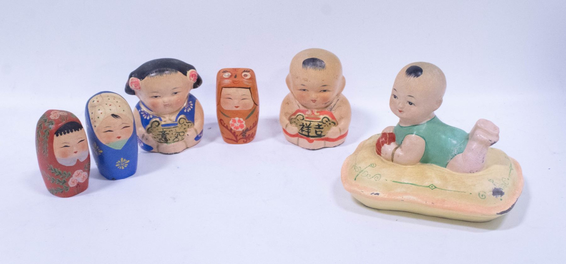 BOX W/ VINTAGE HUI SHAN CHINESE CLAY FIGURINES