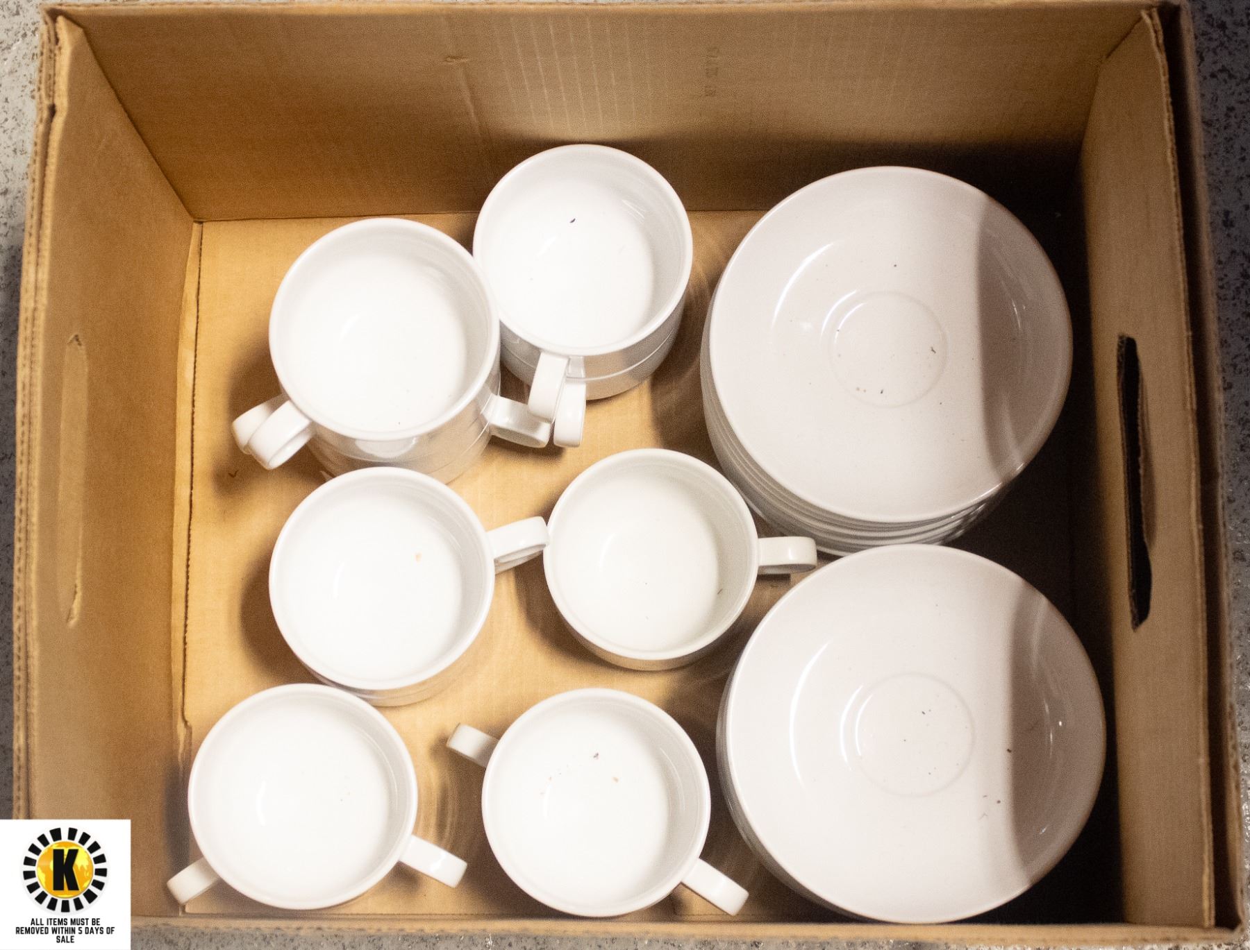 BOX WITH 12 NEW HOTEL STULE COFFEE CUPS & SAUCERS