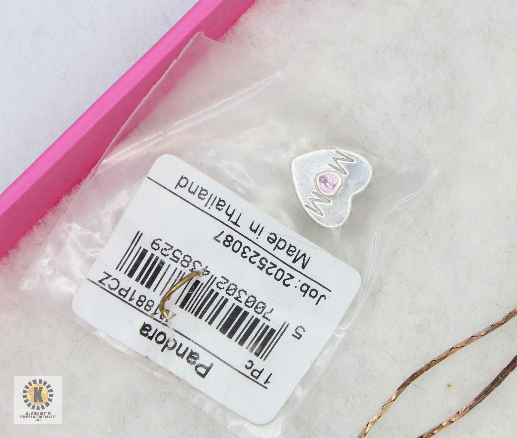 A NEW PANDORA .925 SILVER HEART "MOM" CHARM **ALL ITEMS MUST BE REMOVED BY 5PM SATURDAY, APRIL 3RD 2025. ALL REMAINING ITEMS WILL BE SUBJECT TO A $6.00 PER DAY STORAGE CHARGE. ANY ITEMS REMAINING AFTER MONDAY, MAY 19TH 2025 WILL BE CONSIDERED FORFEITED. NO REFUNDS WILL BE ISSUED FOR FORFEITED ITEMS. TO SCHEDULE A PICK UP APPOINTMENT CLICK HERE