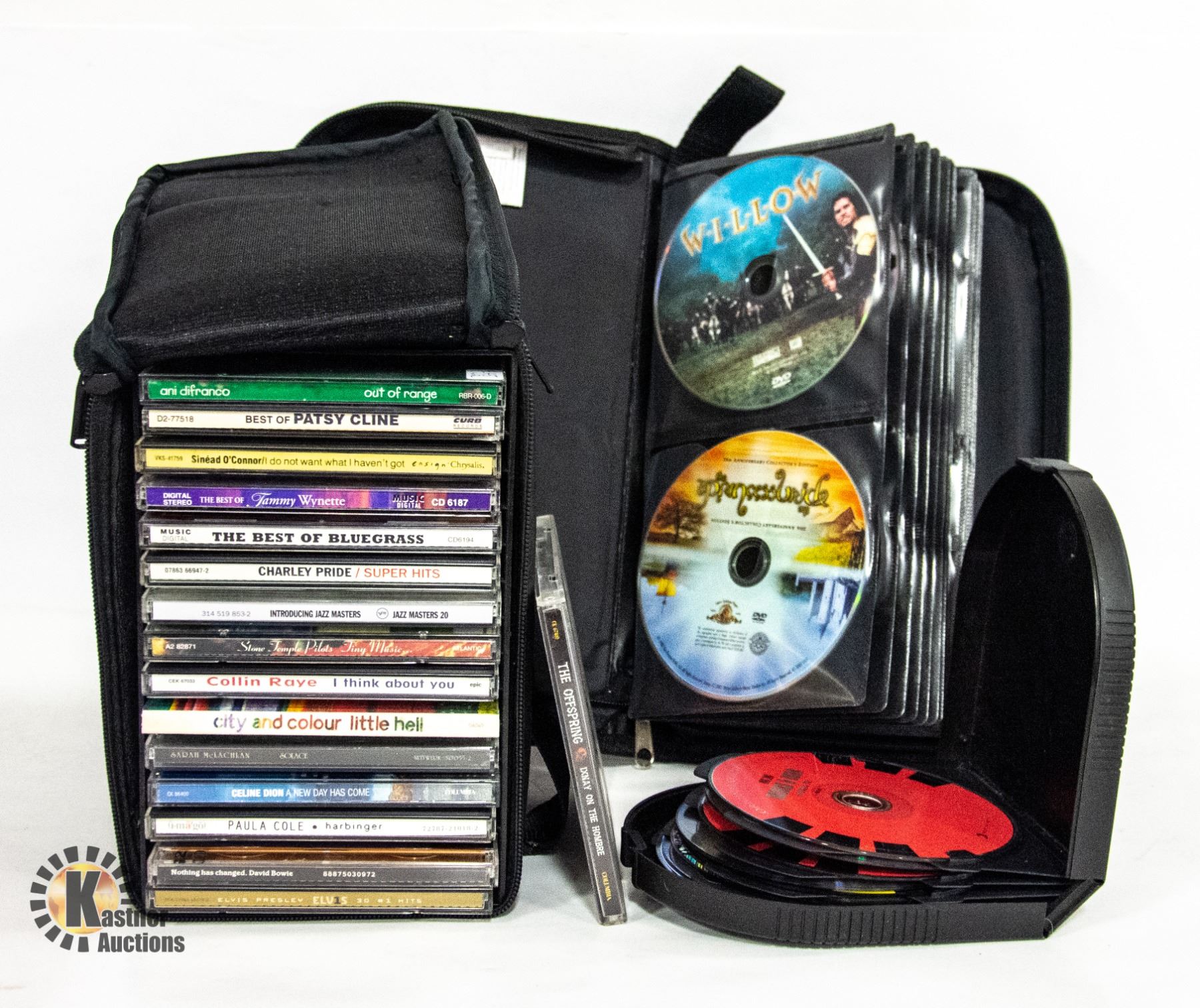 OF 26 CDS - ELVIS PRESLEY 30 #1 HITS, CELINE DION, DAVID BOWIE, BROOKS & DUNN, PINK FLOYD, AND A MOVIE DVD STORAGE CONTAINER WITH 64 DVD MOVIES **ALL ITEMS MUST BE REMOVED BY 5PM SATURDAY, JUNE 17TH 2023. ALL REMAINING ITEMS WILL BE SUBJECT TO A $6.00 PER DAY STORAGE CHARGE. ANY ITEMS REMAINING AFTER MONDAY, JULY 3RD, 2023 WILL BE CONSIDERED FORFEITED. NO REFUNDS WILL BE ISSUED FOR FORFEITED ITEMS. TO SCHEDULE A PICK UP APPOINTMENT CLICK HERE
