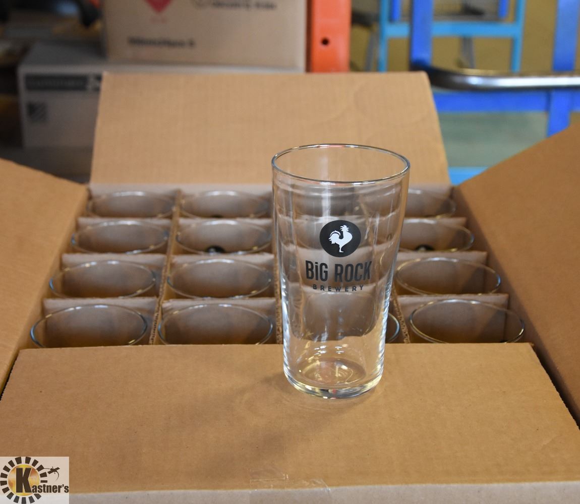 BOX WITH 24 NEW 16OZ BIG ROCK BEER GLASSES