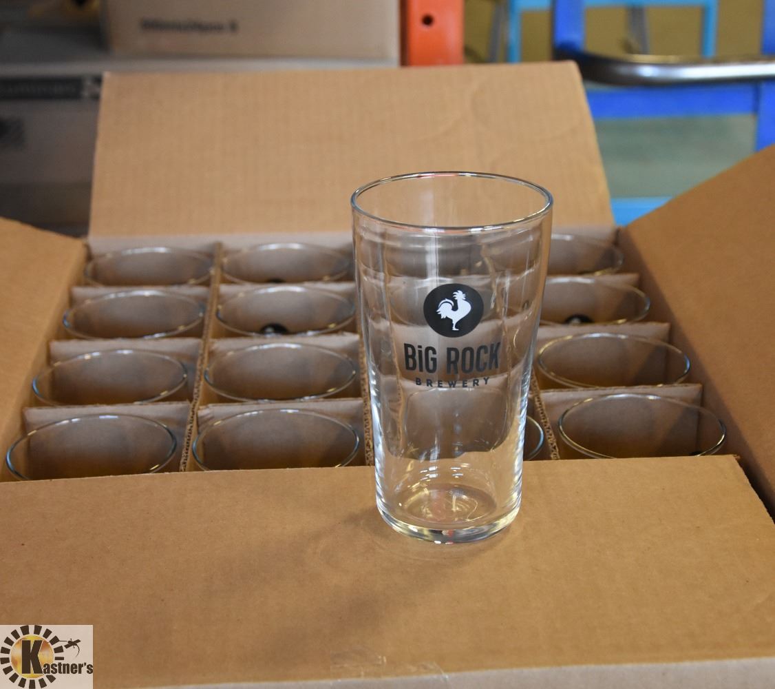 BOX WITH 24 NEW 20OZ BIG ROCK BEER GLASSES