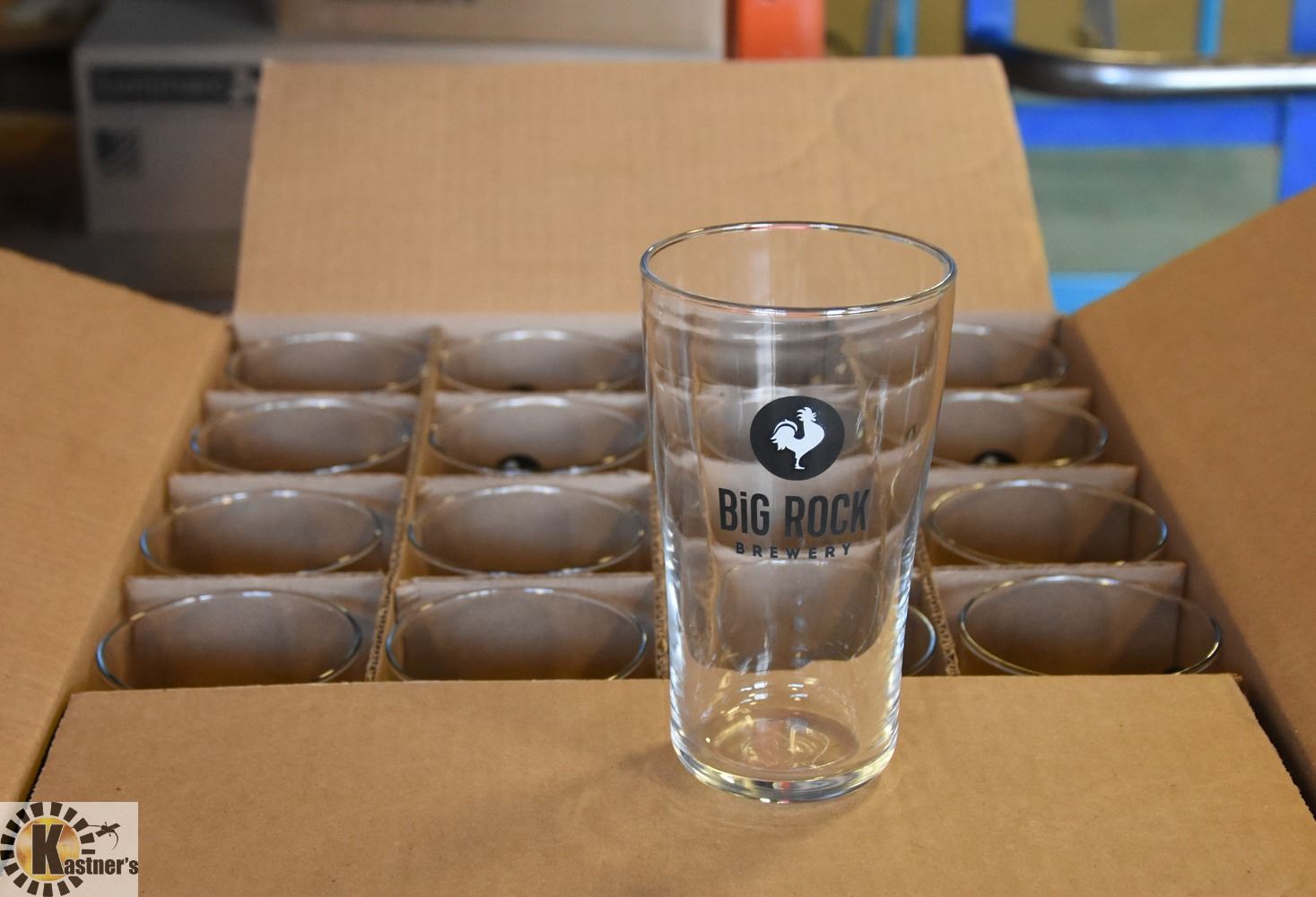 BOX WITH 24 NEW 20OZ BIG ROCK BEER GLASSES