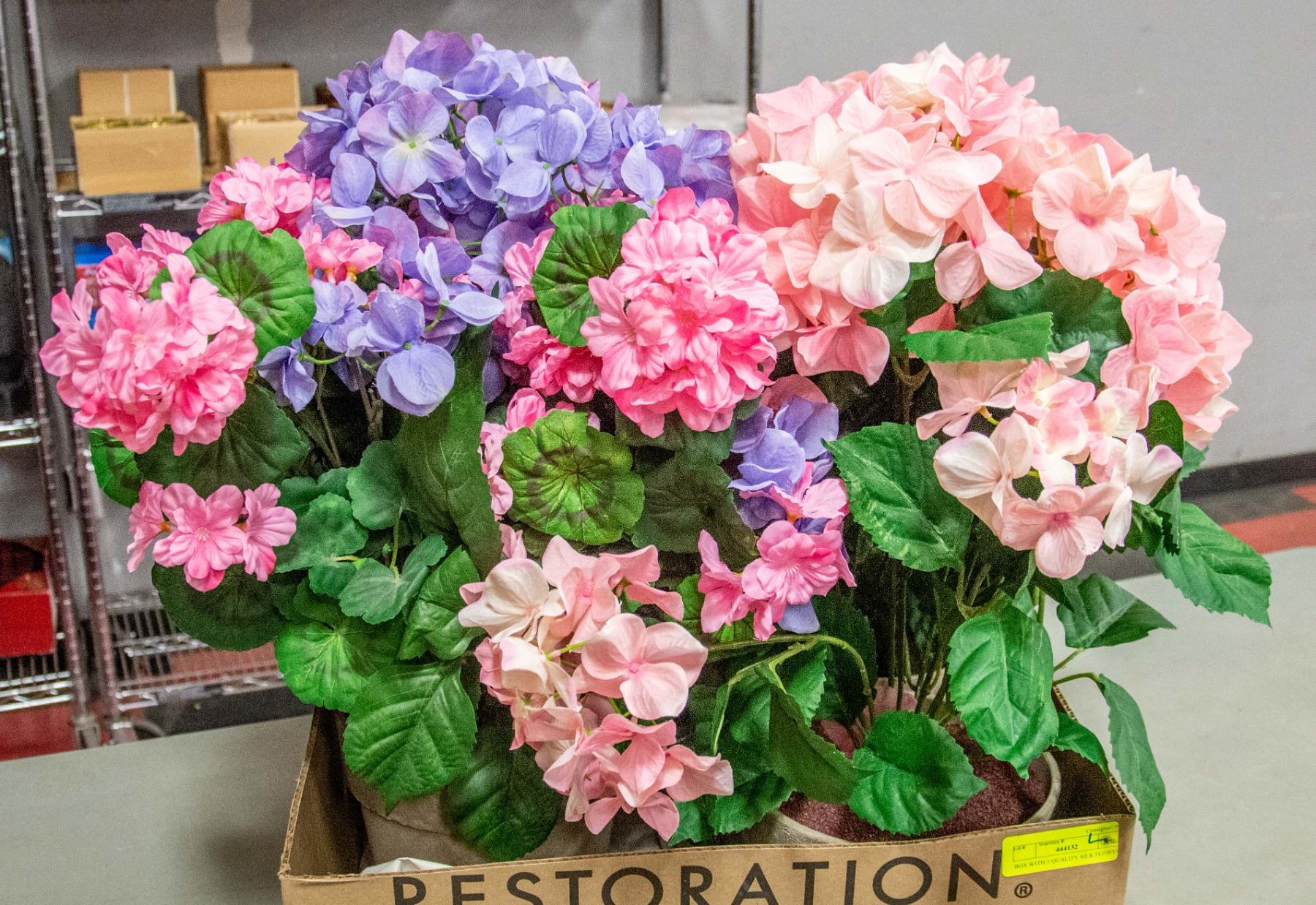 ARRANGEMENTS IN CONTAINERS - PINK & BLUE FLOWERS (8"-DIAM. POT X 24"-TALL)