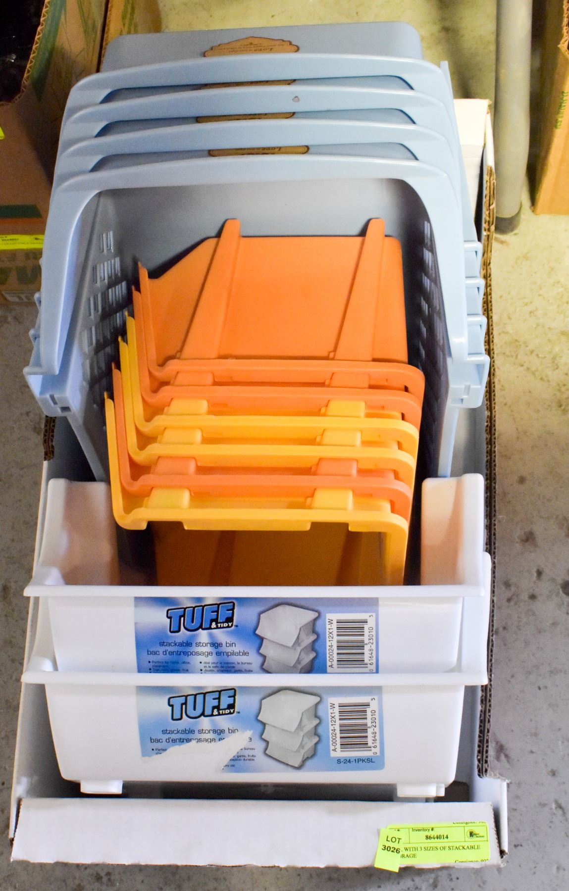 SORTERS - 6 MEDIUM SIZE, 2 LARGE WHITE TUFF'N TIDY AND 4 LARGE BLUE STACKABLE BINS (12 IN TOTAL)