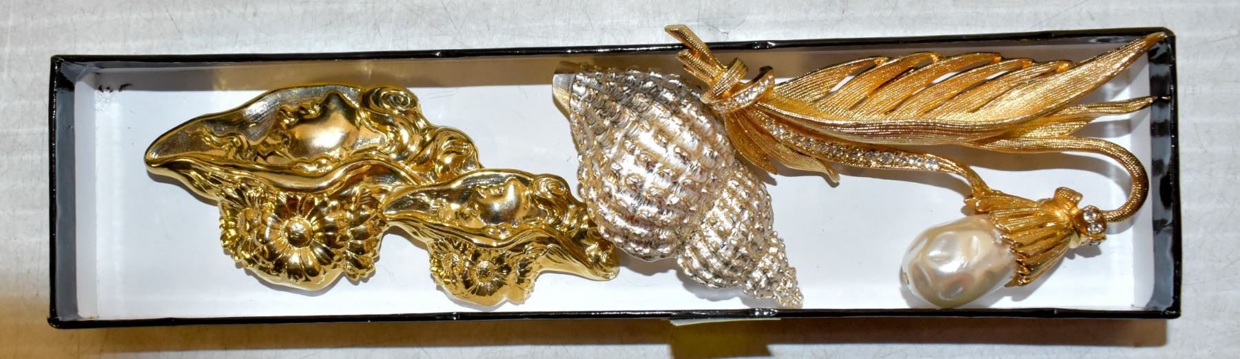 BOX WITH 3 VINTAGE BROOCHES FROM THE ESTATE