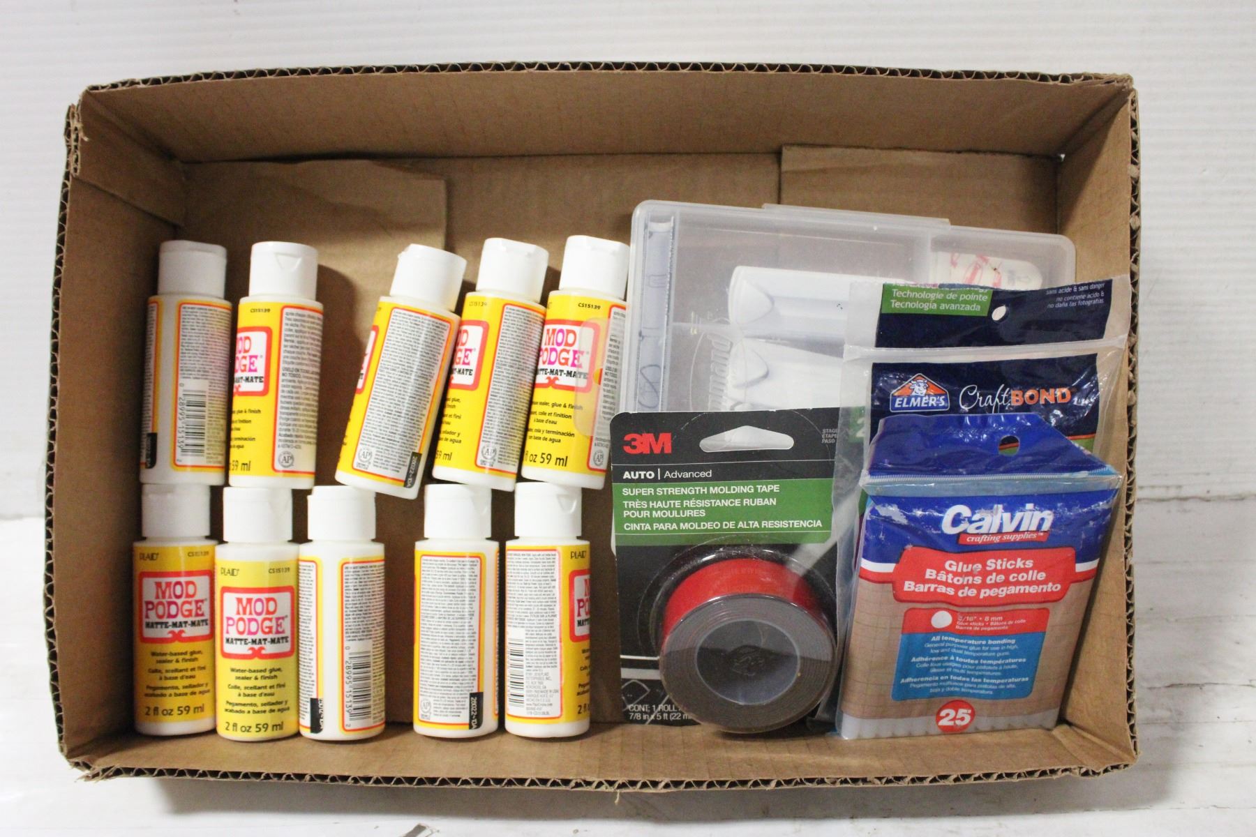 SUPER STRENGTH MOLDING TAPE AND 10 WATER-BASED GLUE, SEALER & FINISH (2 FL. OZ/59 ML EACH) **ALL ITEMS MUST BE REMOVED BY 5PM SATURDAY, APRIL 5TH 2025. ALL REMAINING ITEMS WILL BE SUBJECT TO A $6.00 PER DAY STORAGE CHARGE. ANY ITEMS REMAINING AFTER MONDAY, APRIL 21ST 2025 WILL BE CONSIDERED FORFEITED. NO REFUNDS WILL BE ISSUED FOR FORFEITED ITEMS. TO SCHEDULE A PICK UP APPOINTMENT CLICK HERE