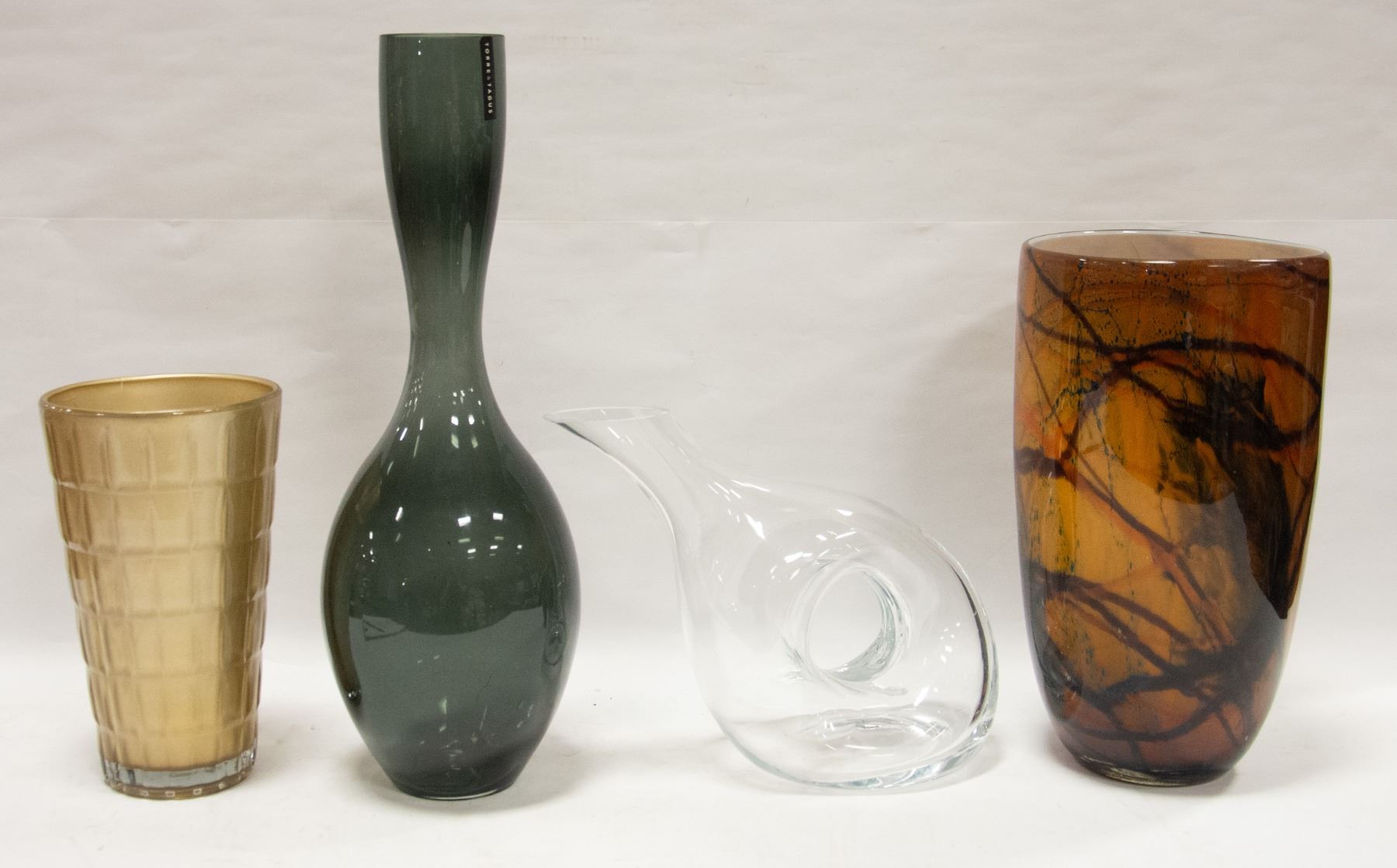 12"-TALL HANDBLOWN MULTI-COLOUR VASE 6.75"-DIAM, "TORRE AND TAGUS" 17"-TALL SMOKEY GLASS VASE, VINTAGE GOLD VASE AND CLEAR OFFSET CONTAINER **ALL ITEMS MUST BE REMOVED BY 5PM SATURDAY, JANUARY 28TH 2023. **ALL REMAINING ITEMS WILL BE SUBJECT TO A $6.00 PER DAY STORAGE CHARGE. ANY ITEMS REMAINING AFTER MONDAY, FEBRUARY 13TH, 2023 WILL BE CONSIDERED FORFEITED. NO REFUNDS WILL BE ISSUED FOR FORFEITED ITEMS. TO SCHEDULE A PICK UP APPOINTMENT CLICK HERE