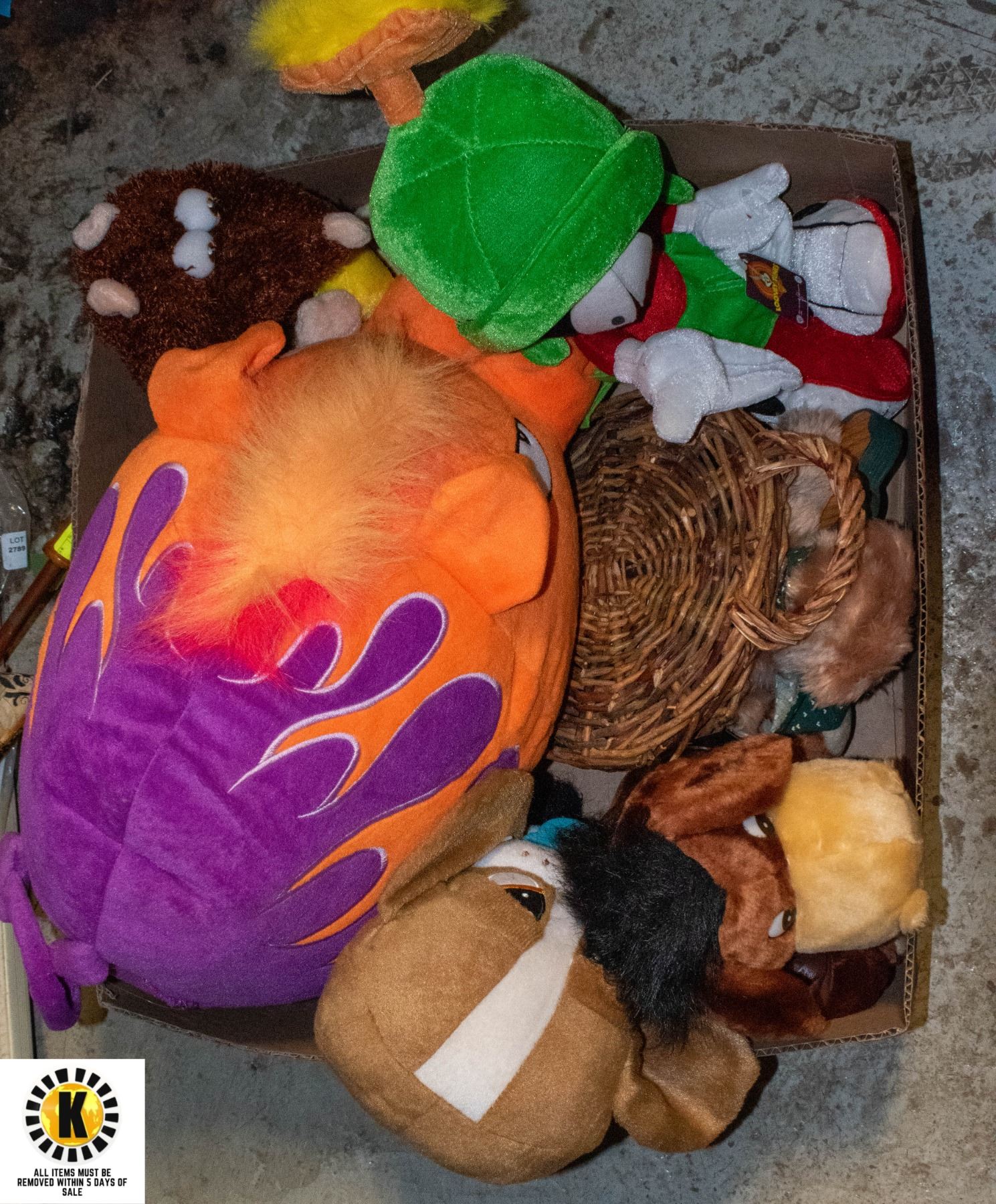 BOX WITH 5 STUFFED TOYS - LARGE PIG, LOONIE