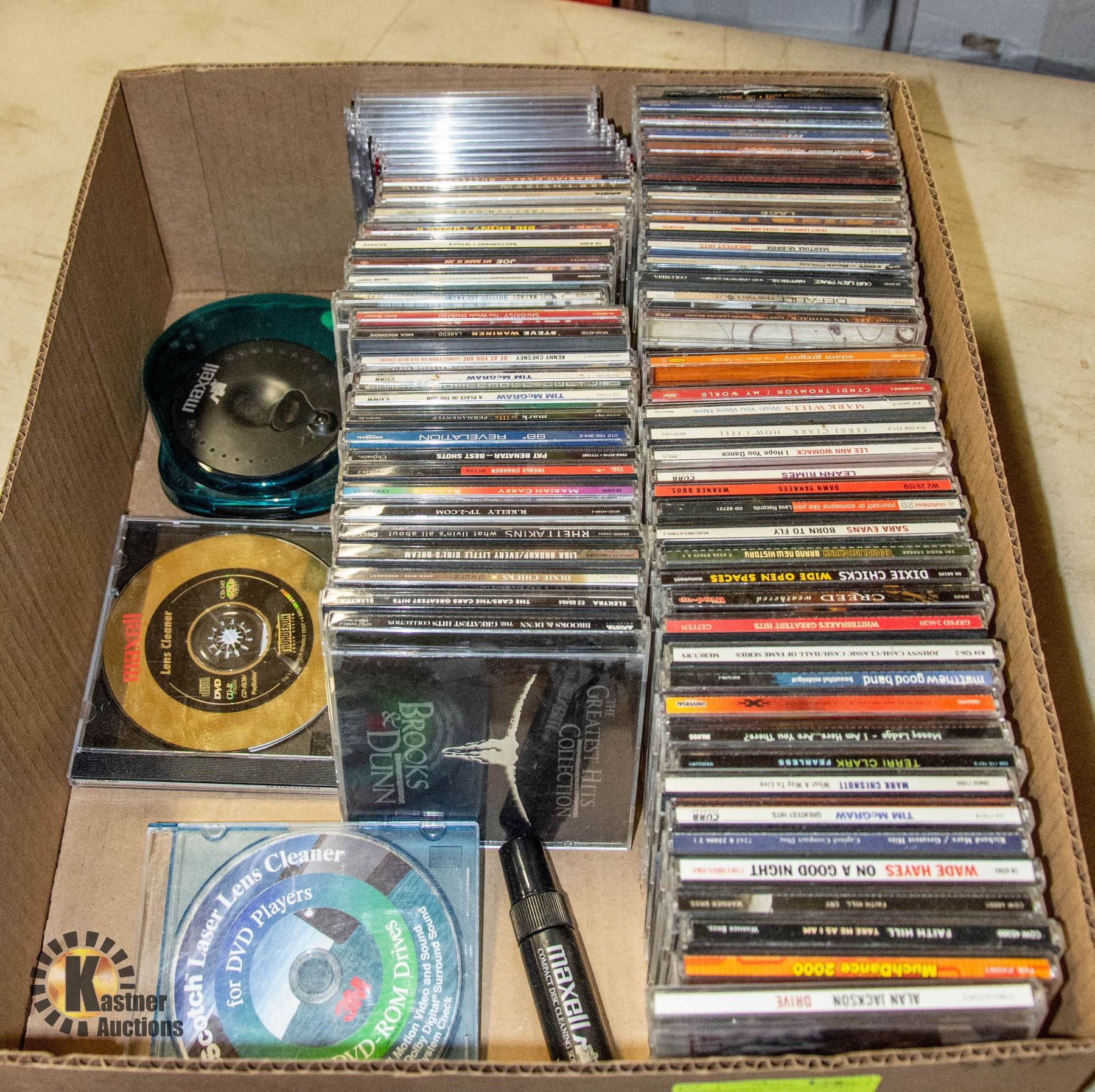 BOX WITH 56 MUSIC CDS, MAXELL DISC CLEANING