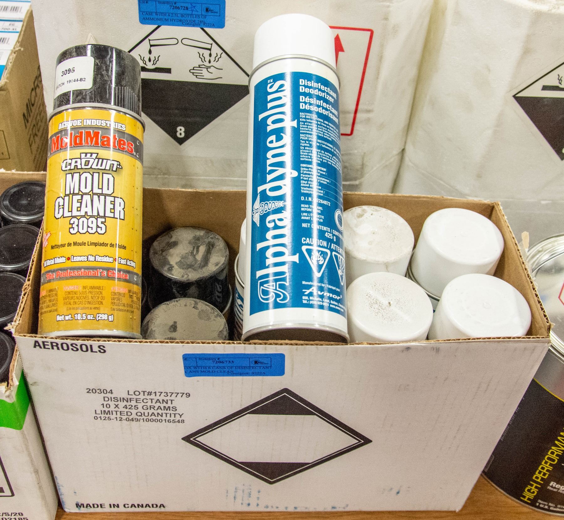 BOX WITH 6 CANS OF DISINFECTANT 4 CANS MOLD CLEAN