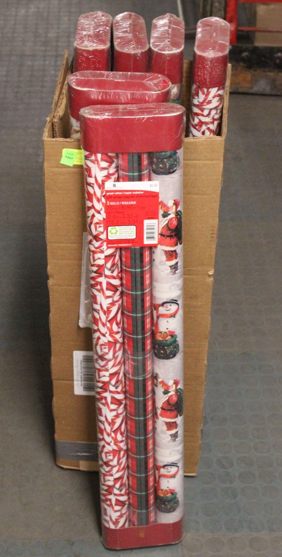 WRAPPING PAPER - VARIOUS COLOURS AND PATTERNS, 18 ROLLS IN TOTAL **ALL ITEMS MUST BE REMOVED BY 5PM SATURDAY, DECEMBER 7TH 2024. ALL REMAINING ITEMS WILL BE SUBJECT TO A $6.00 PER DAY STORAGE CHARGE. ANY ITEMS REMAINING AFTER MONDAY, DECEMBER 23RD 2024 WILL BE CONSIDERED FORFEITED. NO REFUNDS WILL BE ISSUED FOR FORFEITED ITEMS. TO SCHEDULE A PICK UP APPOINTMENT CLICK HERE