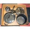 DEEP SAUCE PAN WITH LID, 2 FLAT CREPE PANS, LARGE STAINLESS STEEL POT AND SMALL POT WITH LID