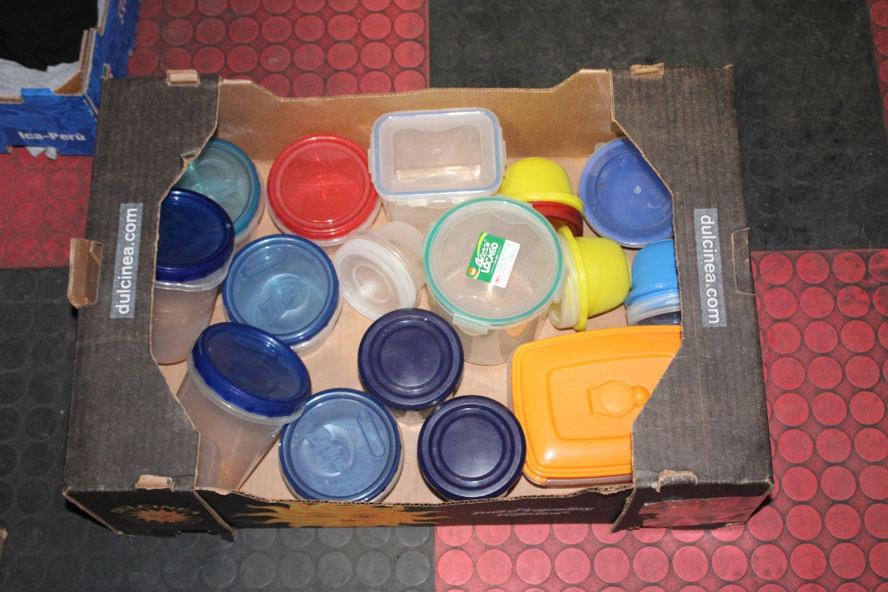 VARIOUS SIZES, CLAMP-DOWN & SCREW-ON TOPS, 2 GLASS CONTAINERS, MICROWAVE STYLE CONTAINERS, ETC. **ALL ITEMS MUST BE REMOVED BY 5PM SATURDAY, APRIL 5TH 2025. ALL REMAINING ITEMS WILL BE SUBJECT TO A $6.00 PER DAY STORAGE CHARGE. ANY ITEMS REMAINING AFTER MONDAY, APRIL 21ST 2025 WILL BE CONSIDERED FORFEITED. NO REFUNDS WILL BE ISSUED FOR FORFEITED ITEMS. TO SCHEDULE A PICK UP APPOINTMENT CLICK HERE