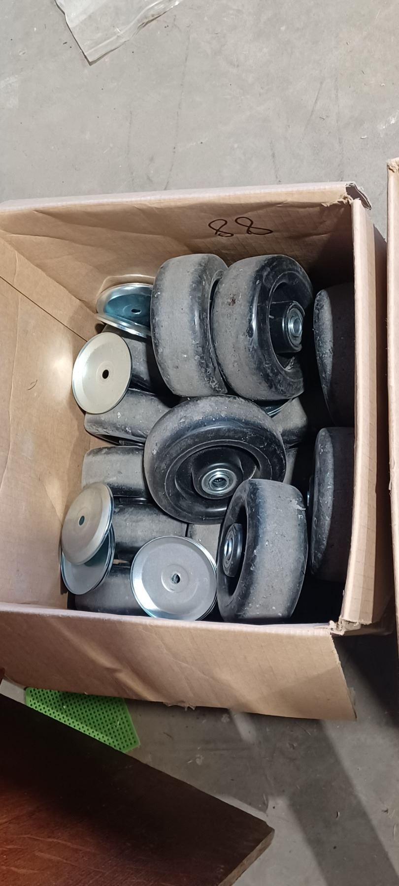 BOX WITH APPROX 18- 5 INCH CART REPLACEMENT WHEELS