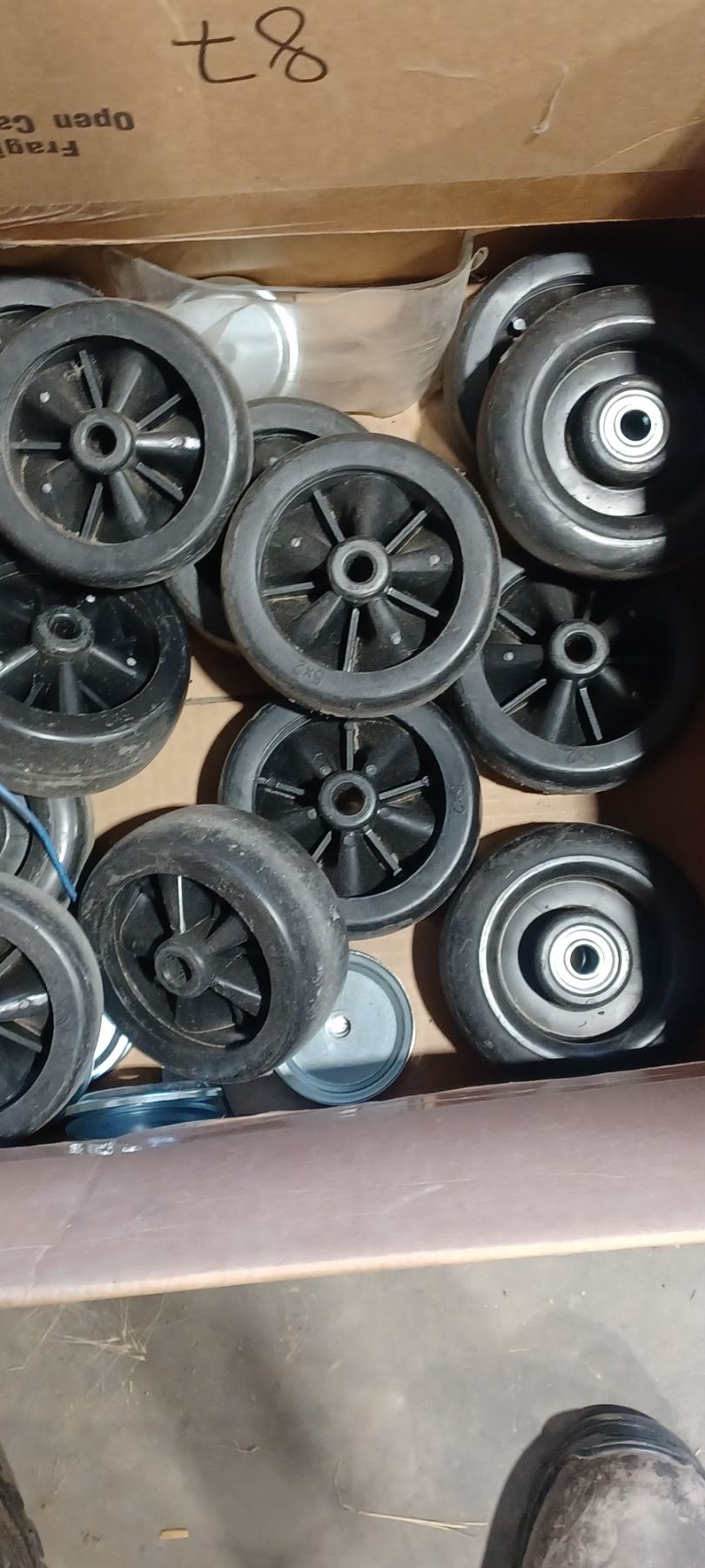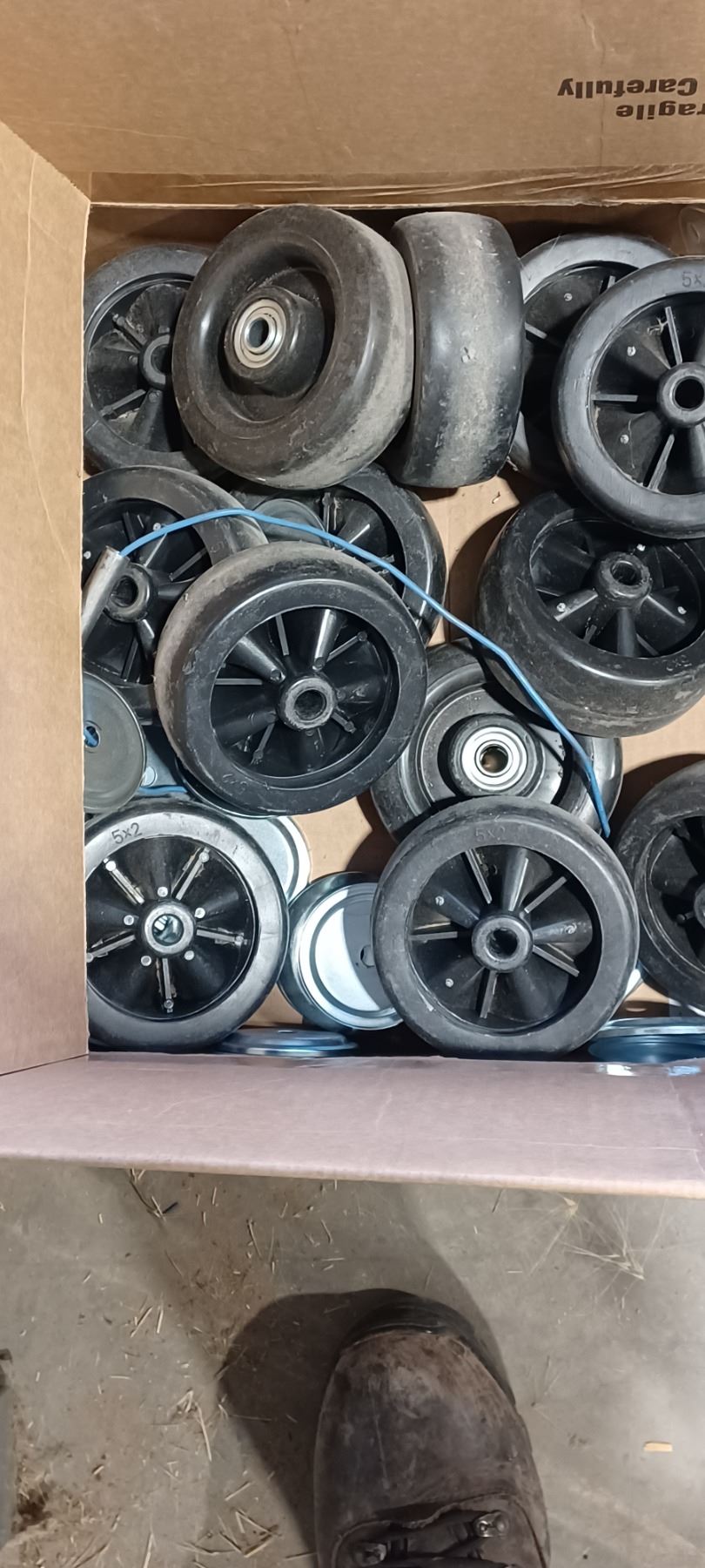 BOX WITH APPROX 20 5 INCH CART REPLACEMENT WHEELS
