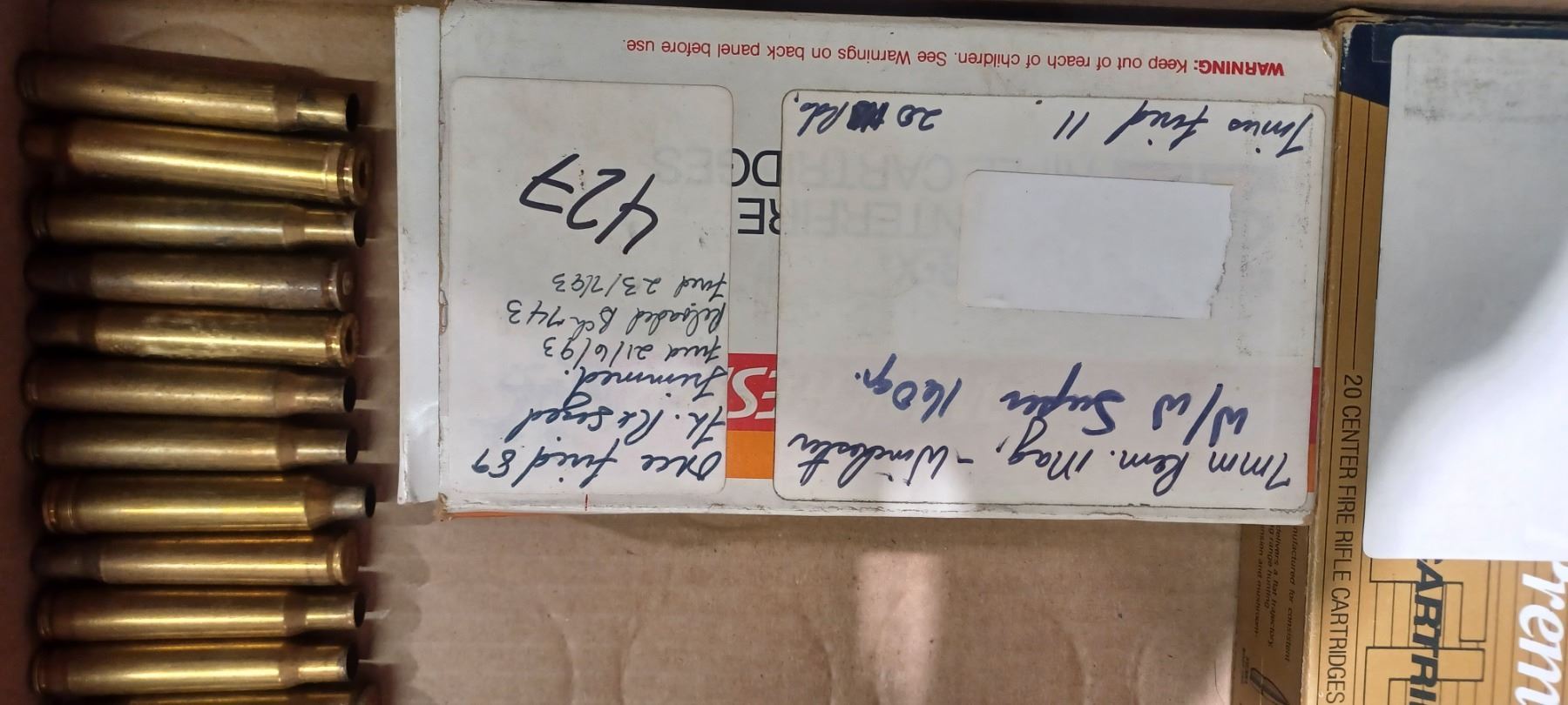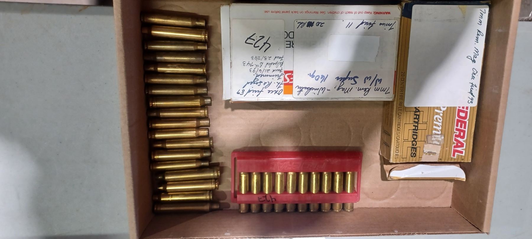 BOX WITH ASSORTED 7MM REM MAG, 300 WIN MAG AND 270 CASES
