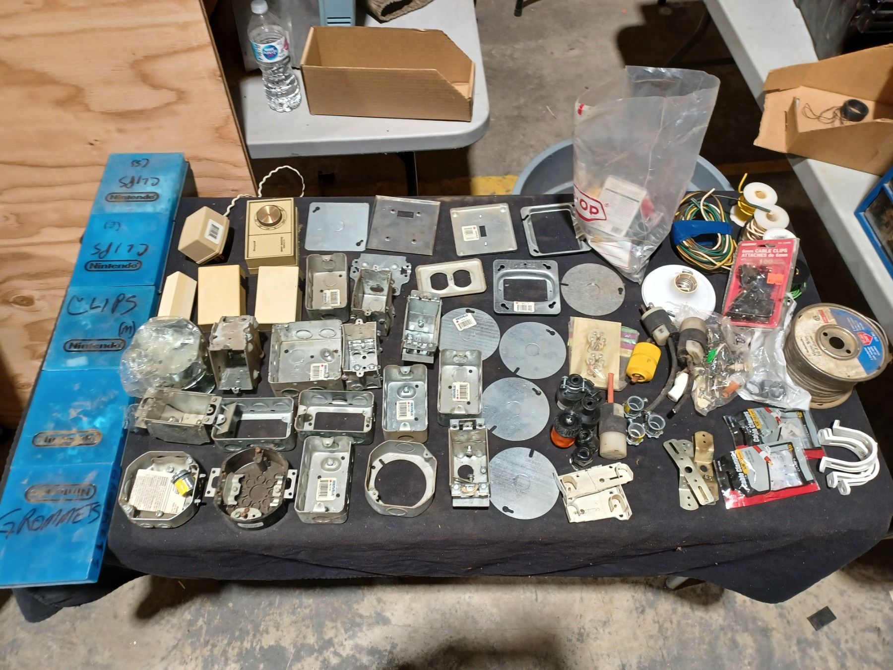BOX WITH ASSORTED ELECTRICAL SUPPLIES