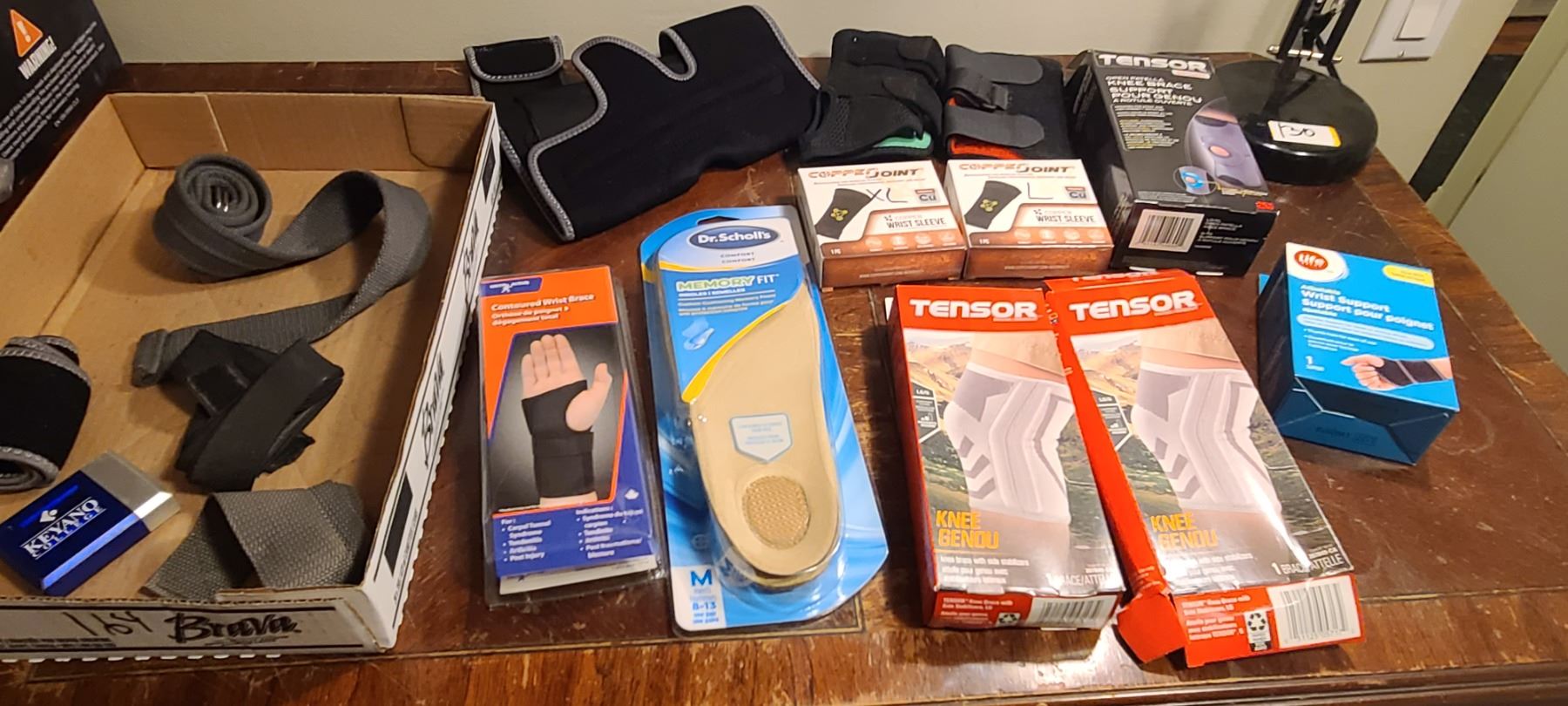 BOX WITH ASSORTED JOINT SUPPORTERS AND INSOLES