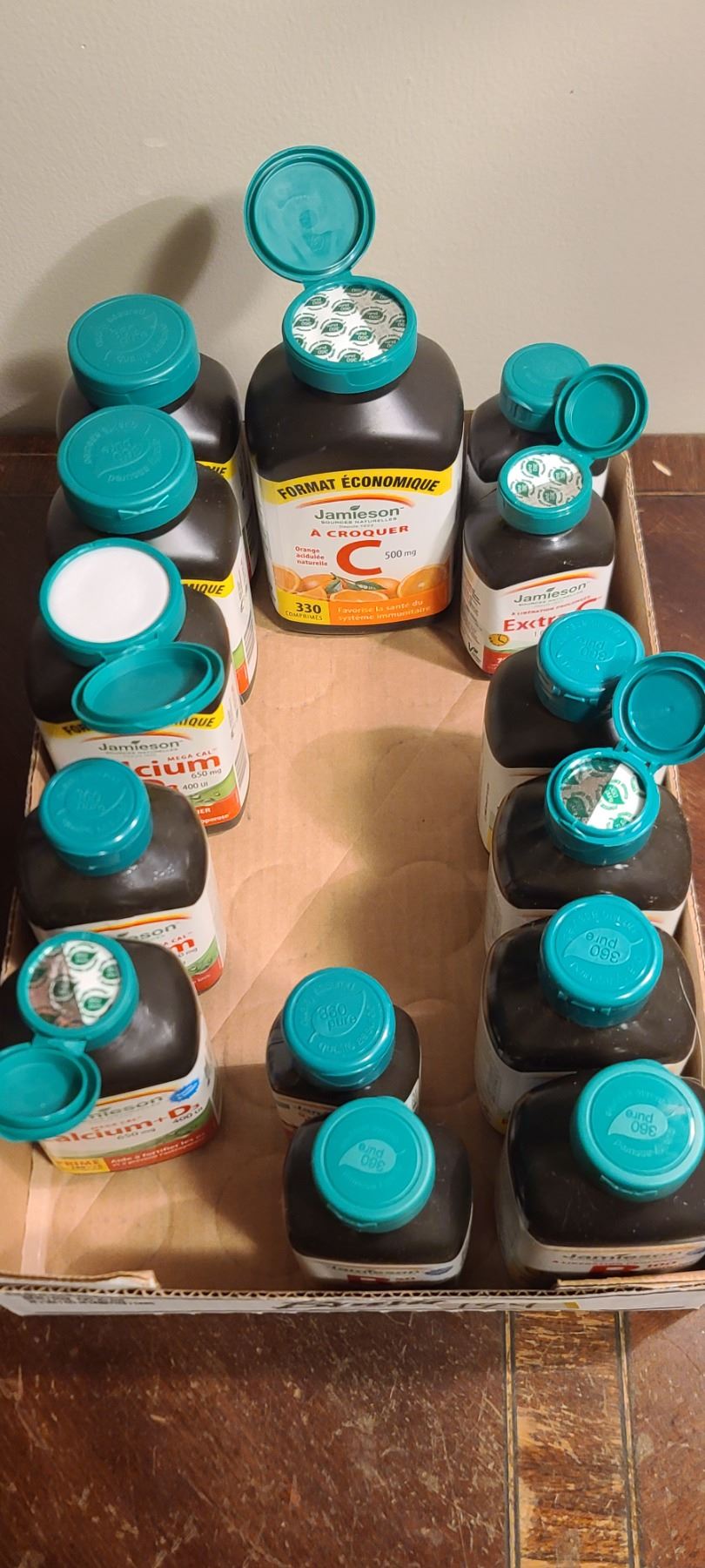 BOX WITH ASSORTED VITAMINS AND EXP. DATES