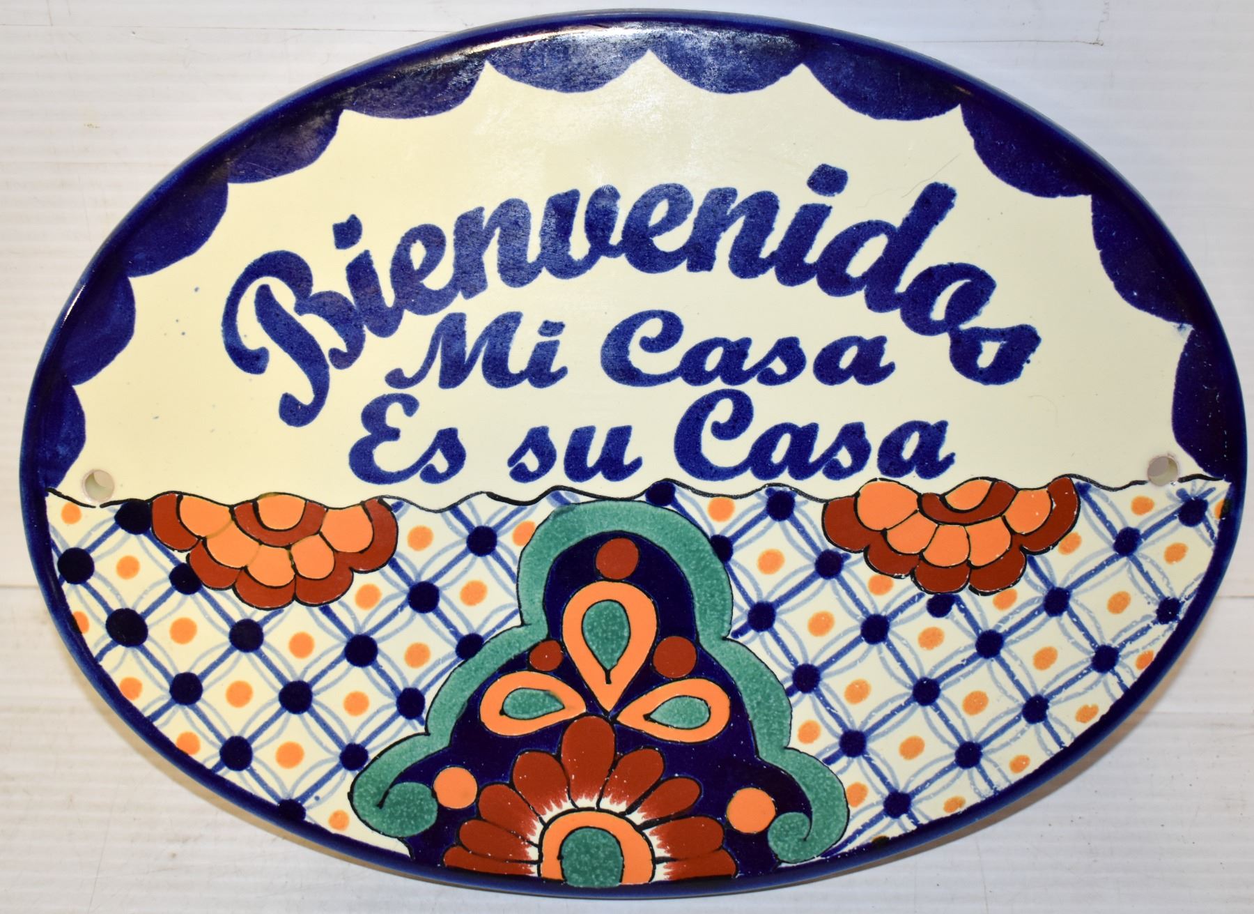 GLAZED TERRA COTA WALL PLAQUE, MADE IN MEXICO (13"L X 9.5"H)